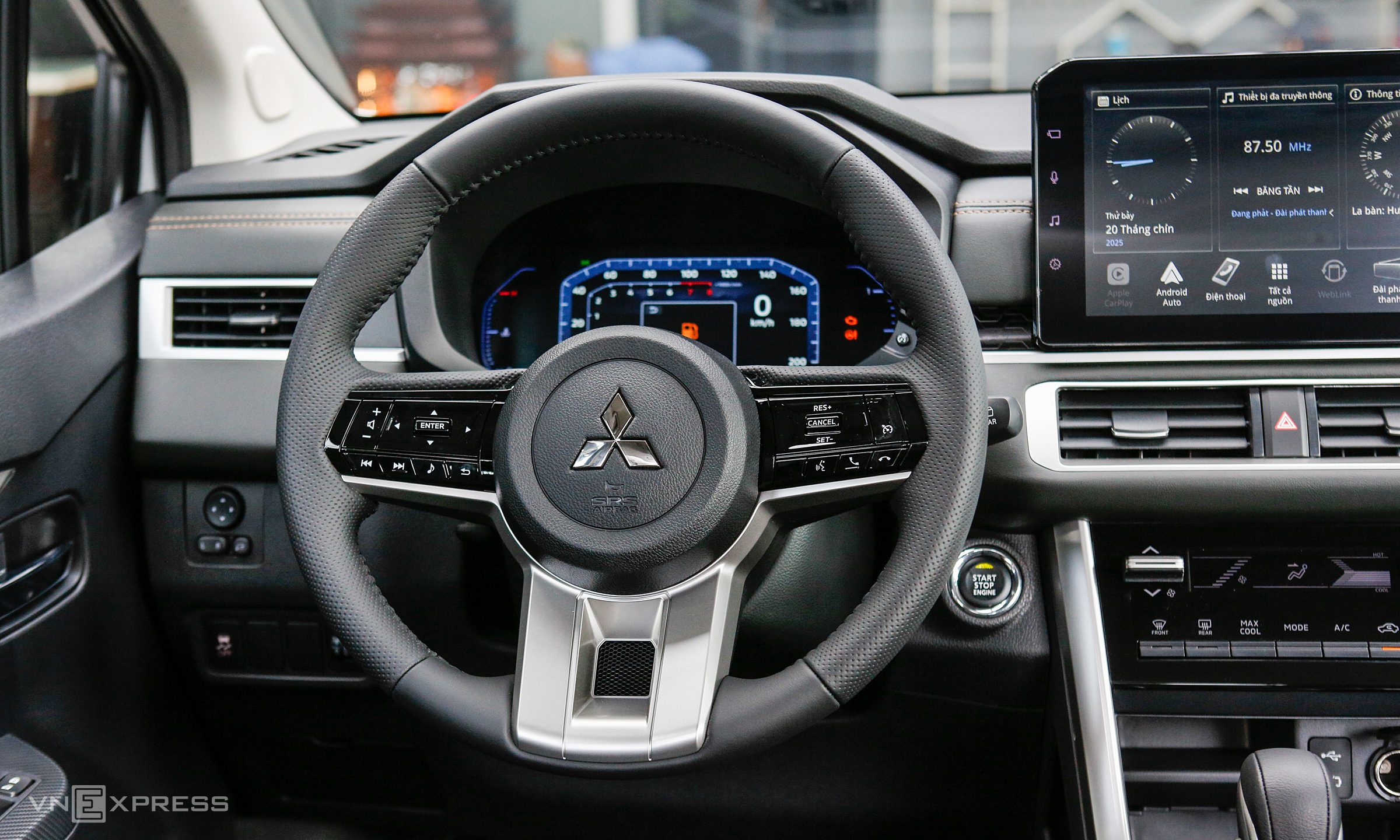 The 2025 Xpander is fitted with a new 3-spoke, leather-wrapped steering wheel with integrated controls. |