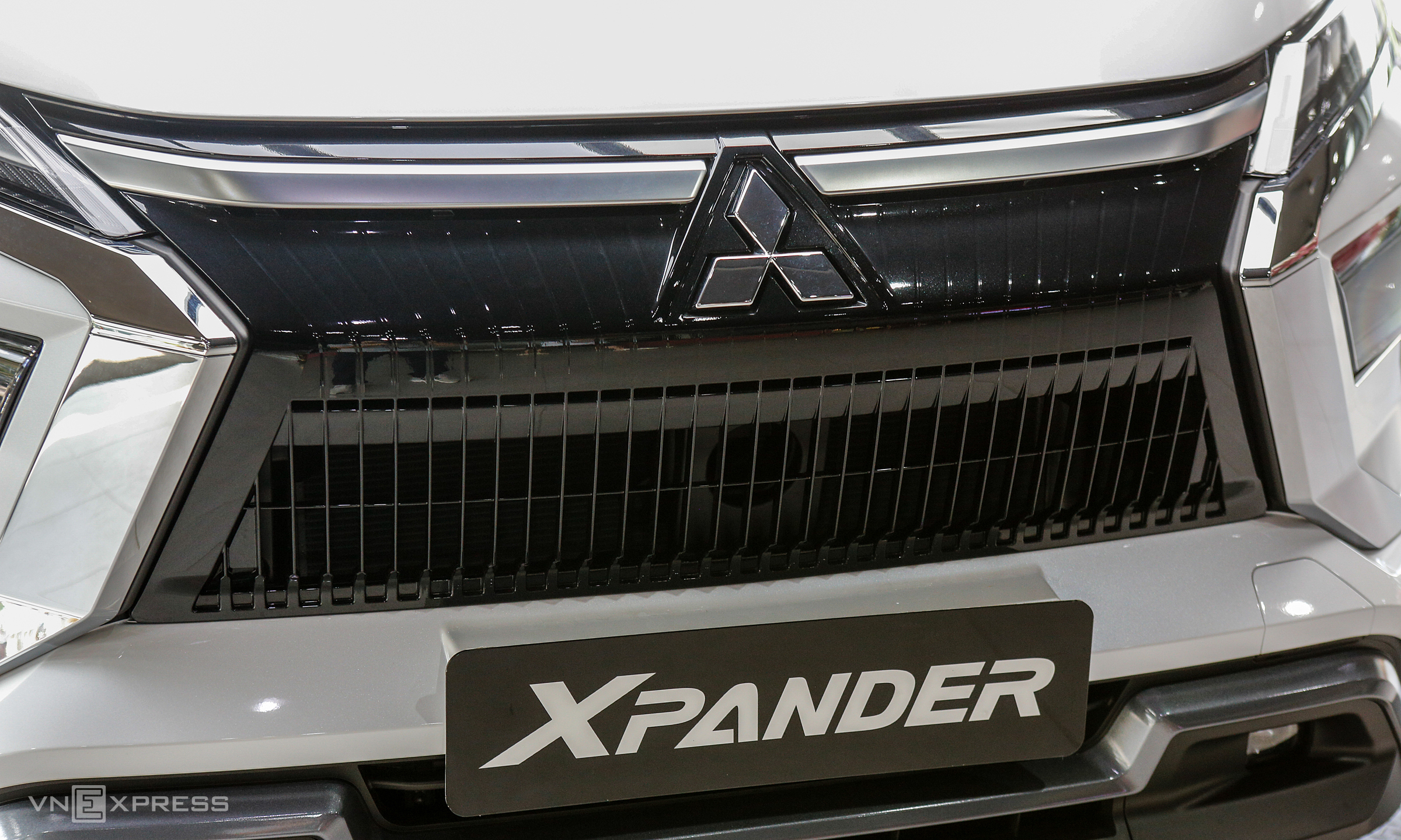 The 2025 Xpander's grille has been redesigned with slender vertical bars, replacing the previous crisscross mesh design. |