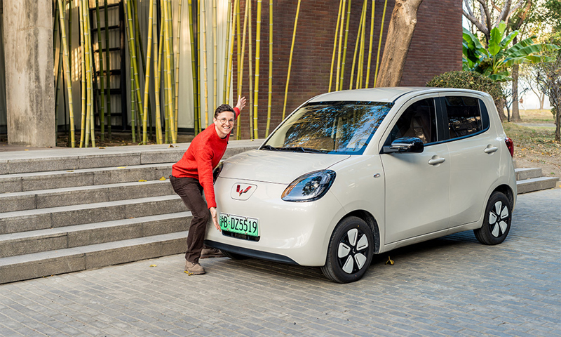 Ethan Robertson with a Wuling Mini EV model. *Photo: Wheelsboy*