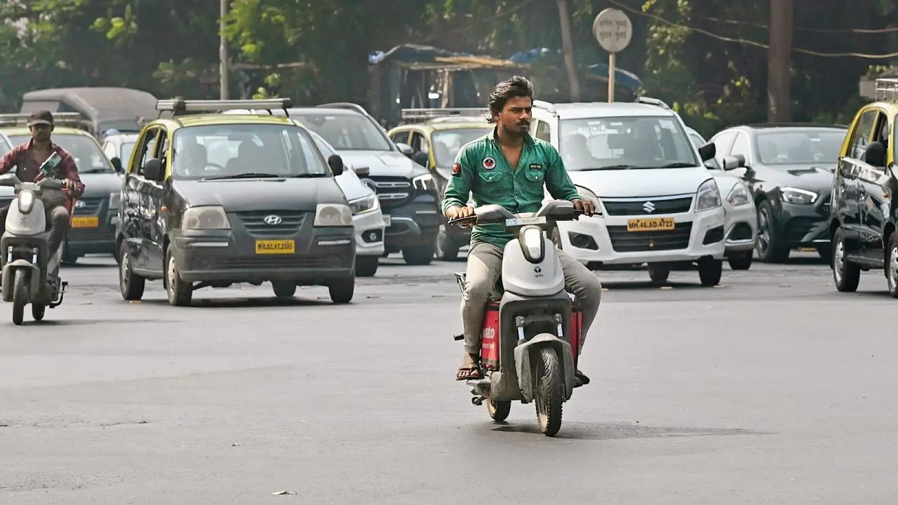 Delivery driver on an electric vehicle in Mumbai, India. Photo: Midday |