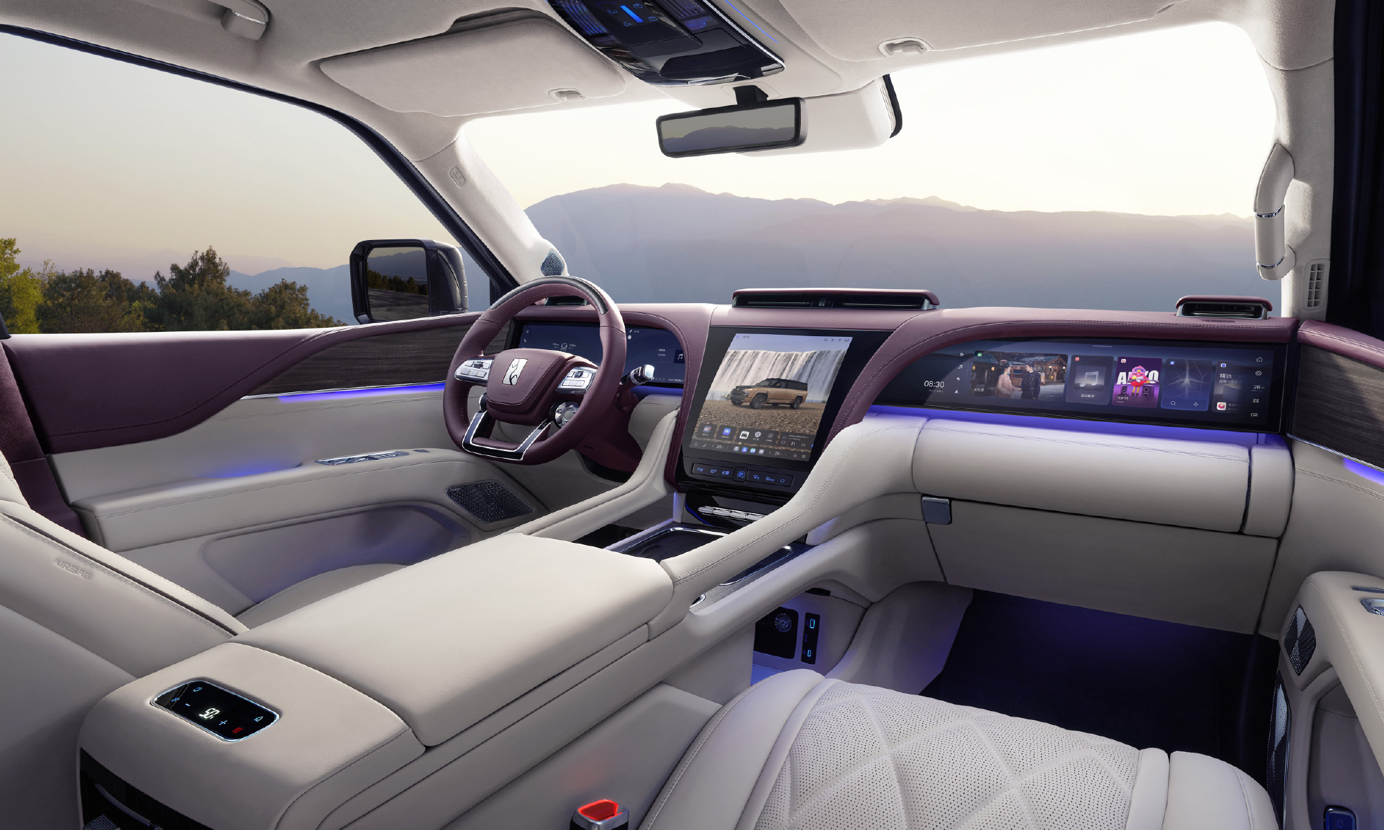 The interior features a 12.8-inch OLED center screen, a 23.6-inch instrument panel, a passenger-side multimedia screen, and an AR-HUD.
