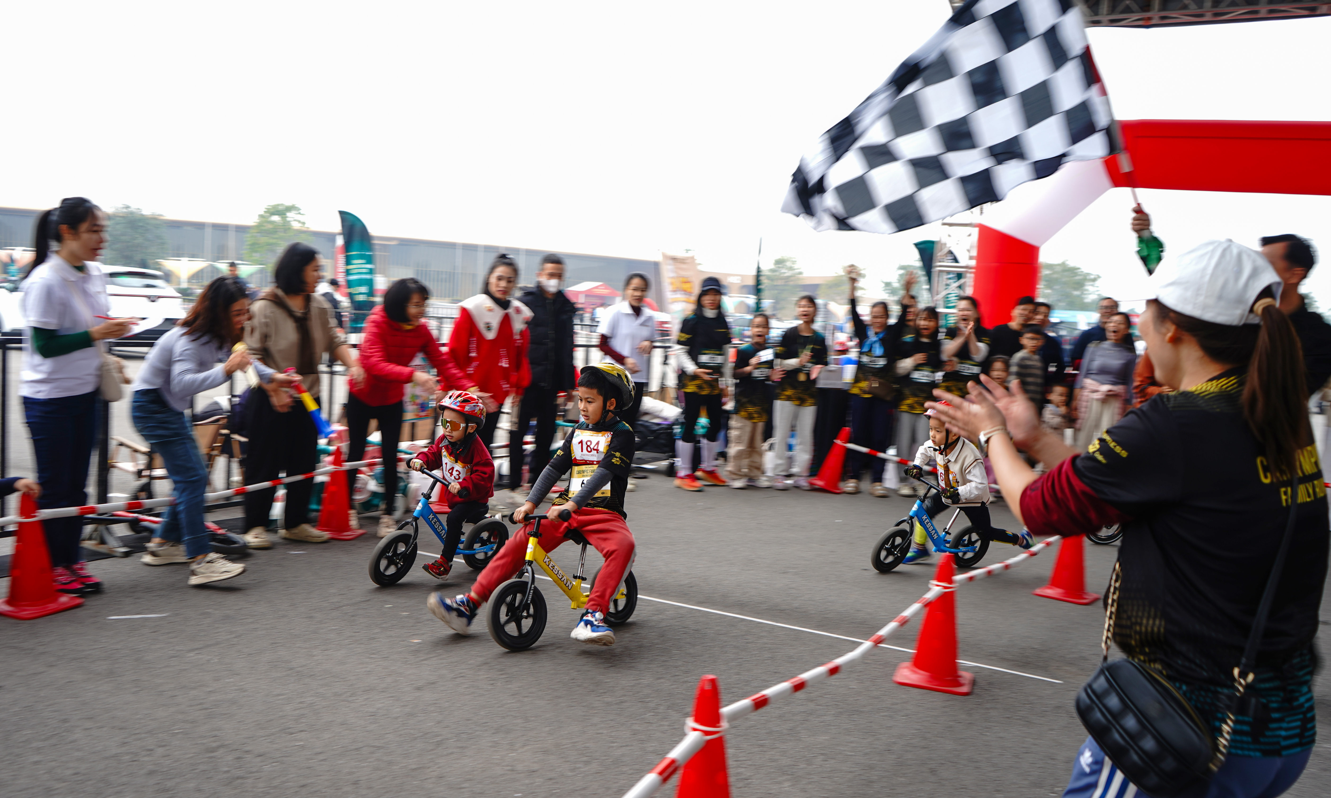 Little Quoc An (4 years old - number 143) participated in a balance bike race with friends. An's mother, Vu Thi Thuy (Long Bien, Hanoi), said she learned about the event through social media. "Our family isn't yet in a position to buy a car, so we mainly came here to visit and let our child have fun and experience things," she stated.