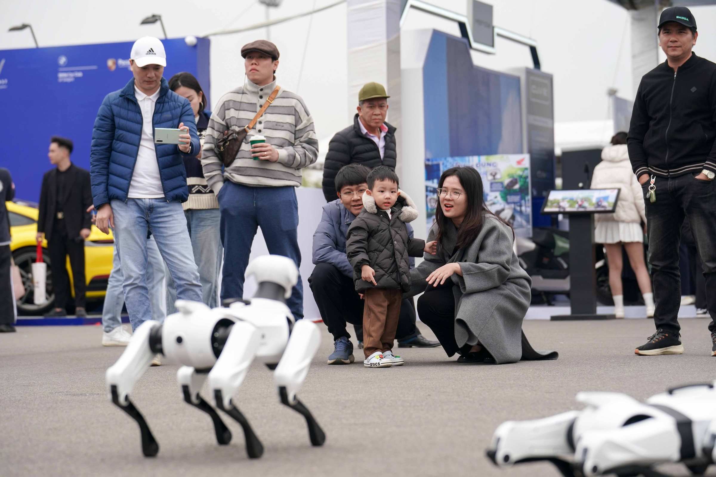 At VnMS, not only cars but also unique technologies were showcased by brands, attracting visitors. Pictured is a robot dog at the Omoda & Jaecoo display area. *Photo: Hoang Giang*