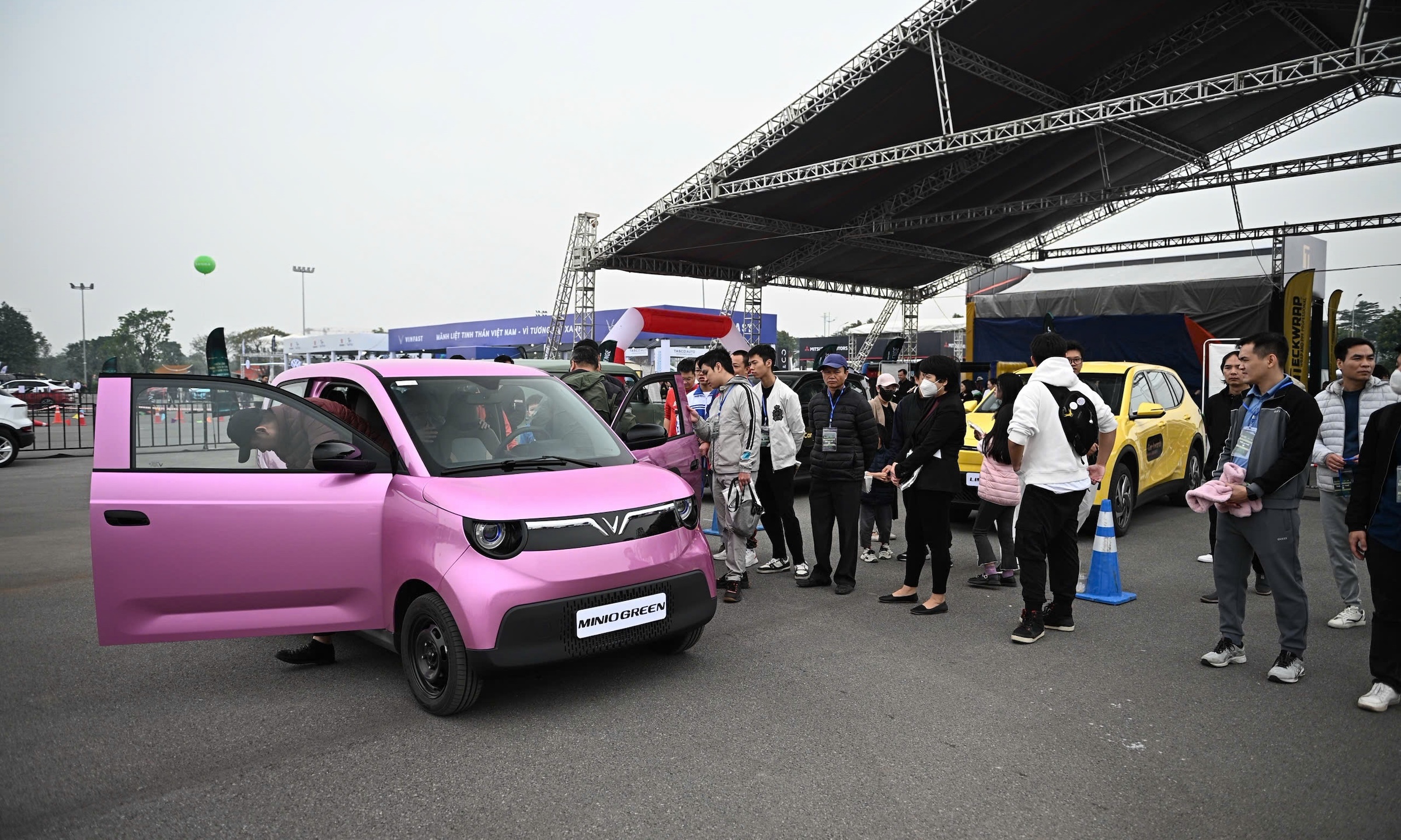 People waited for their turn to test drive VinFast's smallest and most affordable car, the Minio Green, at VnMS 2025.