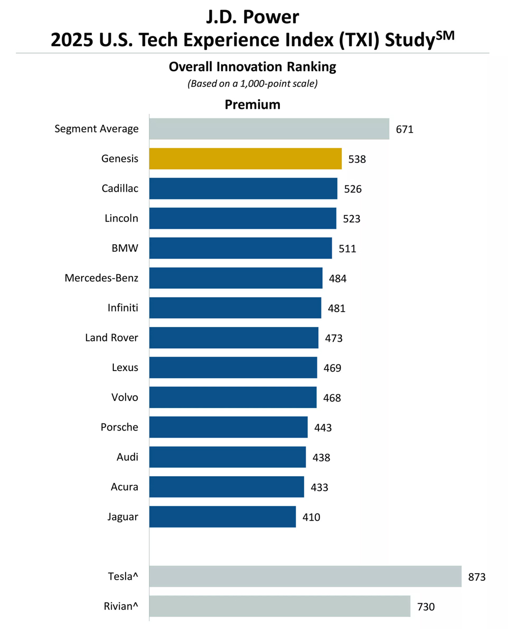 2025 Tech Experience Index Study ranking with Genesis leading the premium segment. Photo: J.D. Power |