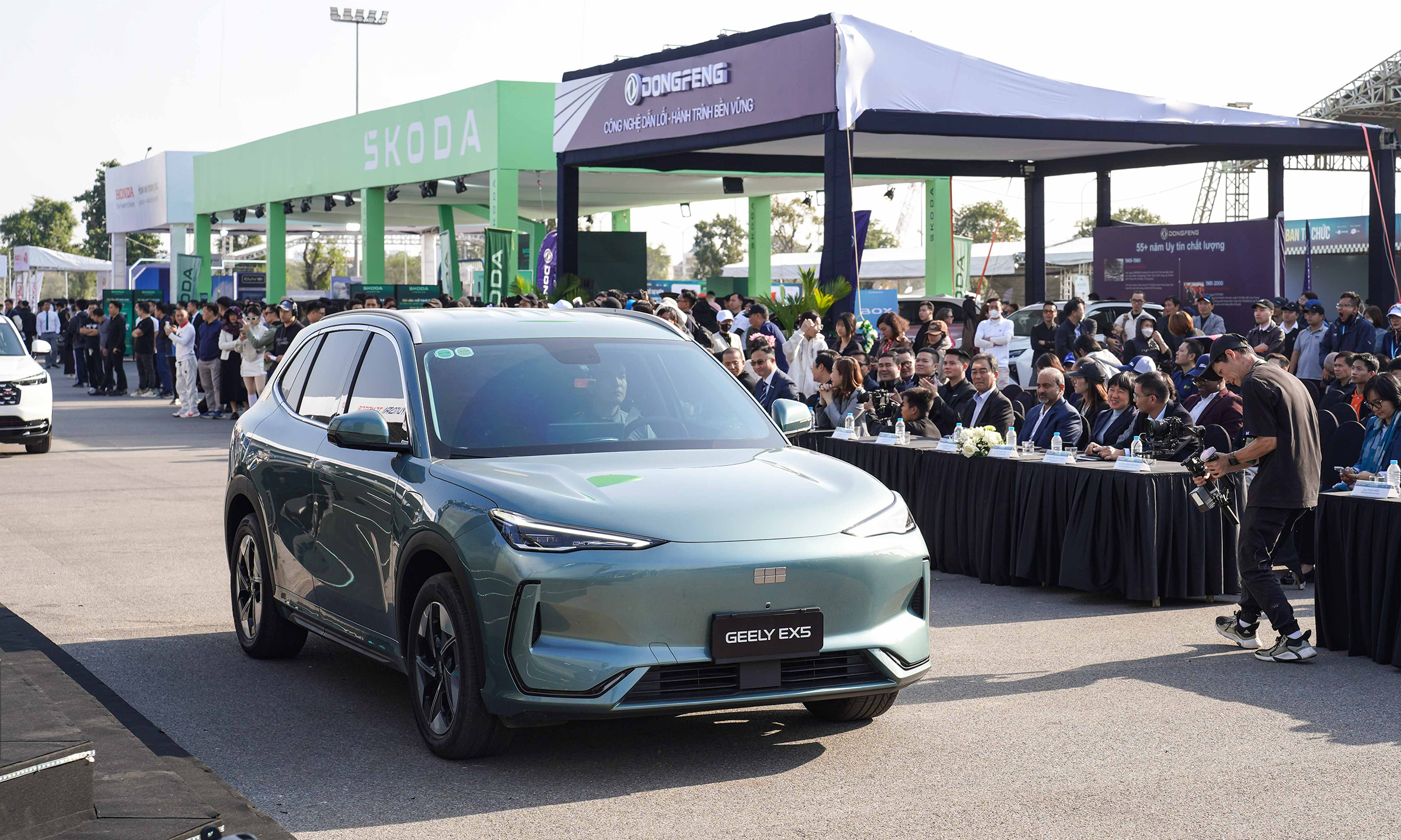 A Geely EX5 imported from China at the VnMS 2025 exhibition organized by VnExpress newspaper in Hanoi. Photo: Hoang Giang |