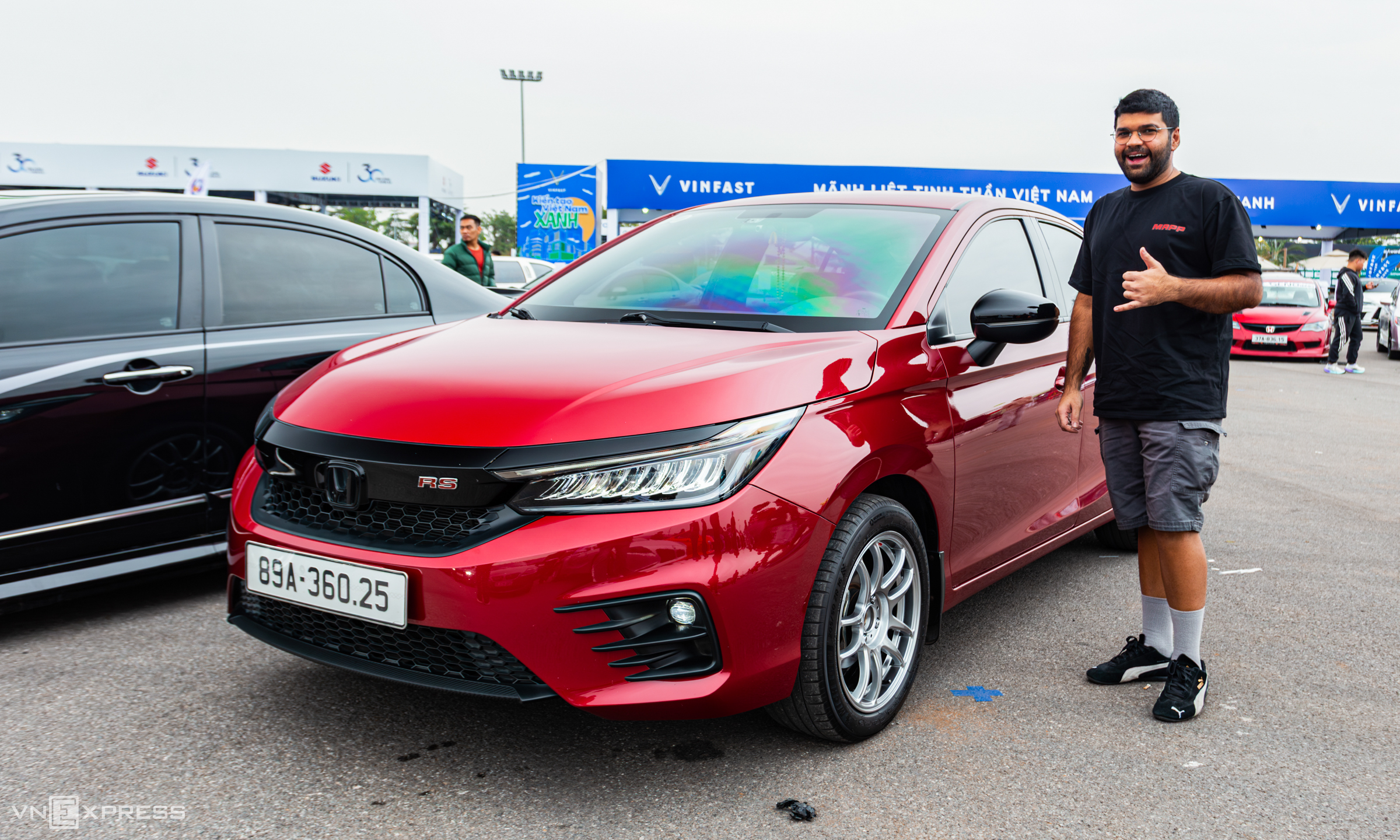 Prateek Singh, an Indian national and the only foreigner to participate, brought his City RS, which only had its wheels upgraded. He shared, "Today I came with my family to have fun and socialize with everyone. This is my first time attending such a lively gathering with so many cars and unique customized models. I feel excited and happy to be so warmly welcomed by the organizers and Vietnamese car owners". |