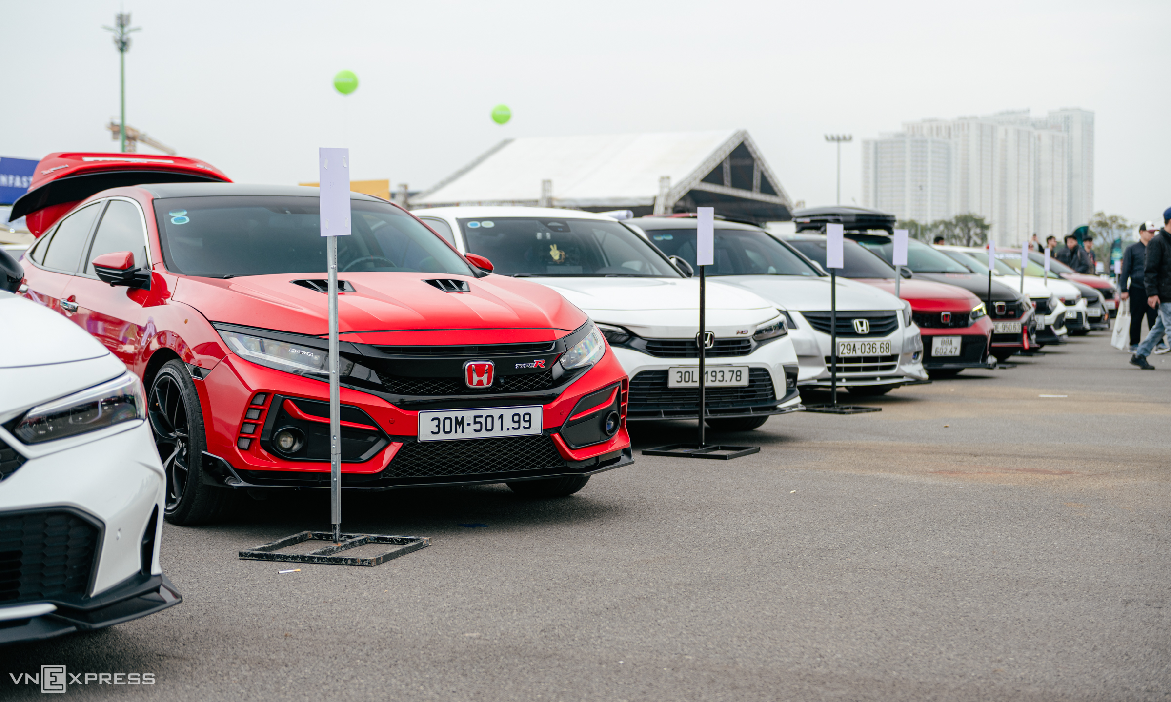 Honda's section showcased two City and Accord models, with a notable presence of 20 Civic cars, including 8th-generation, 10th-generation, and the high-performance Type R. All were customized to their owners' individual styles. The arrangement of these Japanese vehicles created a JDM (Japanese Domestic Market) atmosphere, delighting many visitors. |
