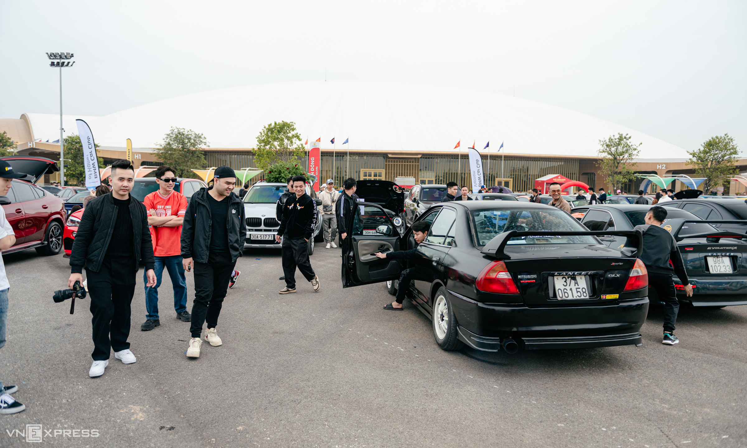 5 Mitsubishi Lancer cars participated, with two upgraded to the Evolution and Evo X versions. The owners collectively revved their engines, attracting many onlookers. |