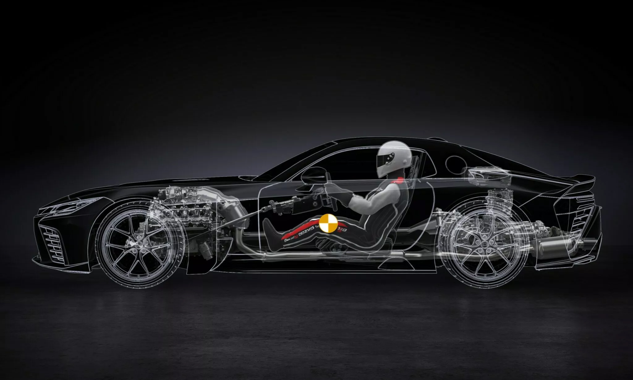 Both the front and rear suspension systems employ double-wishbone designs with aluminum control arms. Toyota states that the suspension is engineered for linear response and high control. These components may be shared with the GT3 version, suggesting that the commercial version's durability and performance capabilities will be similar to those of the track variant.