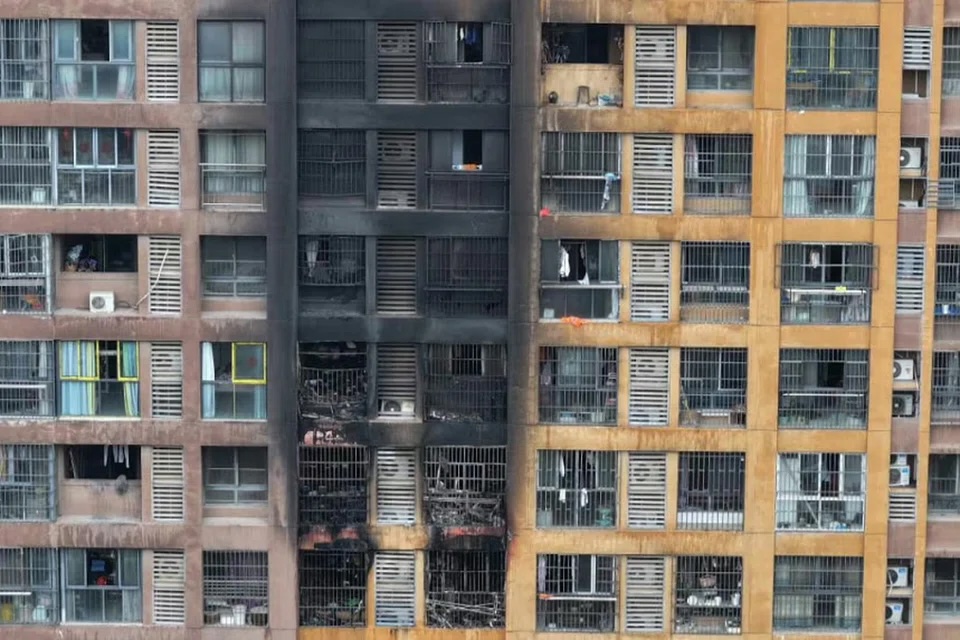 The apartment fire killed 15 people in Nanjing in 2/2024. Photo: Weibo