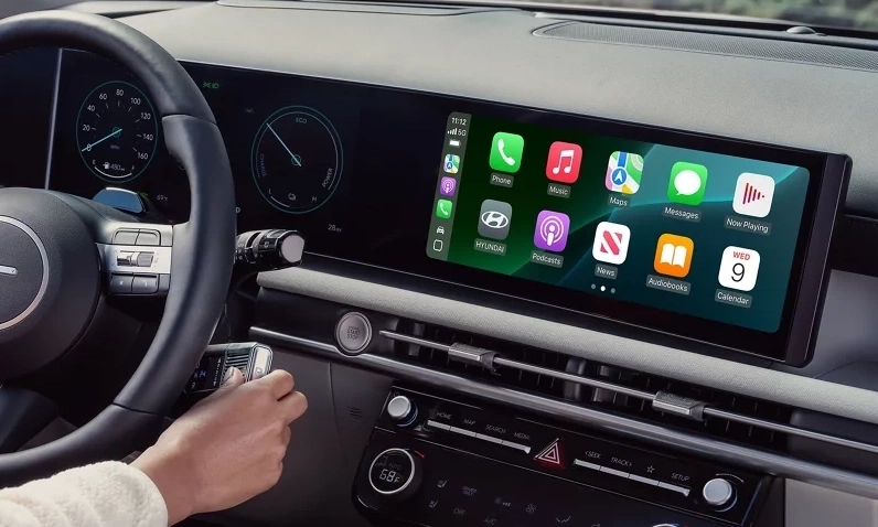 The exterior and interior of the Tucson hybrid generally resemble the standard model. Its external styling features softer lines at the front, becoming more angular towards the rear. Inside, the cabin boasts a large curved display, comprising two 12,3-inch screens integrated with a 12-inch head-up display. An electronic shifter is located behind the steering wheel.