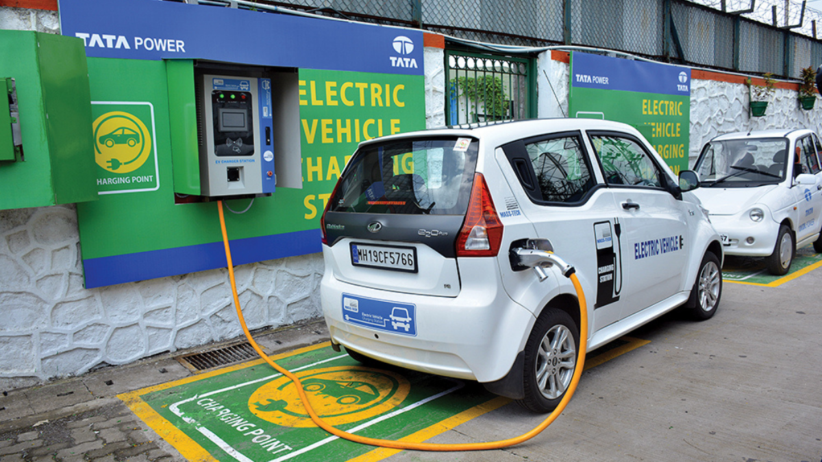 An electric vehicle charging station by Tata Power on a roadside in India. Photo: Economic Times |