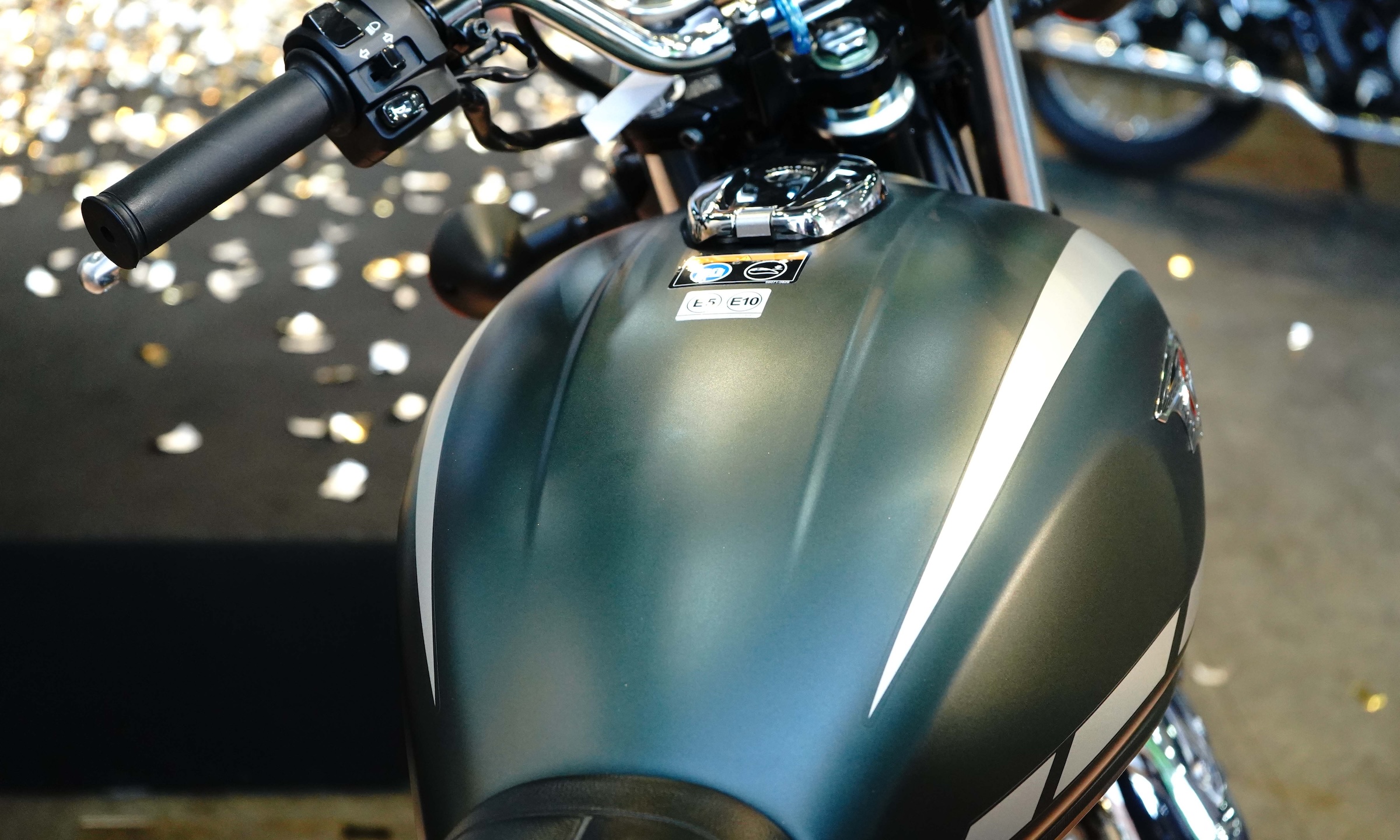 The Kawasaki W230 features a 12-liter teardrop-shaped fuel tank. This model is currently sold in Vietnam in a single color: metallic matte dark green.