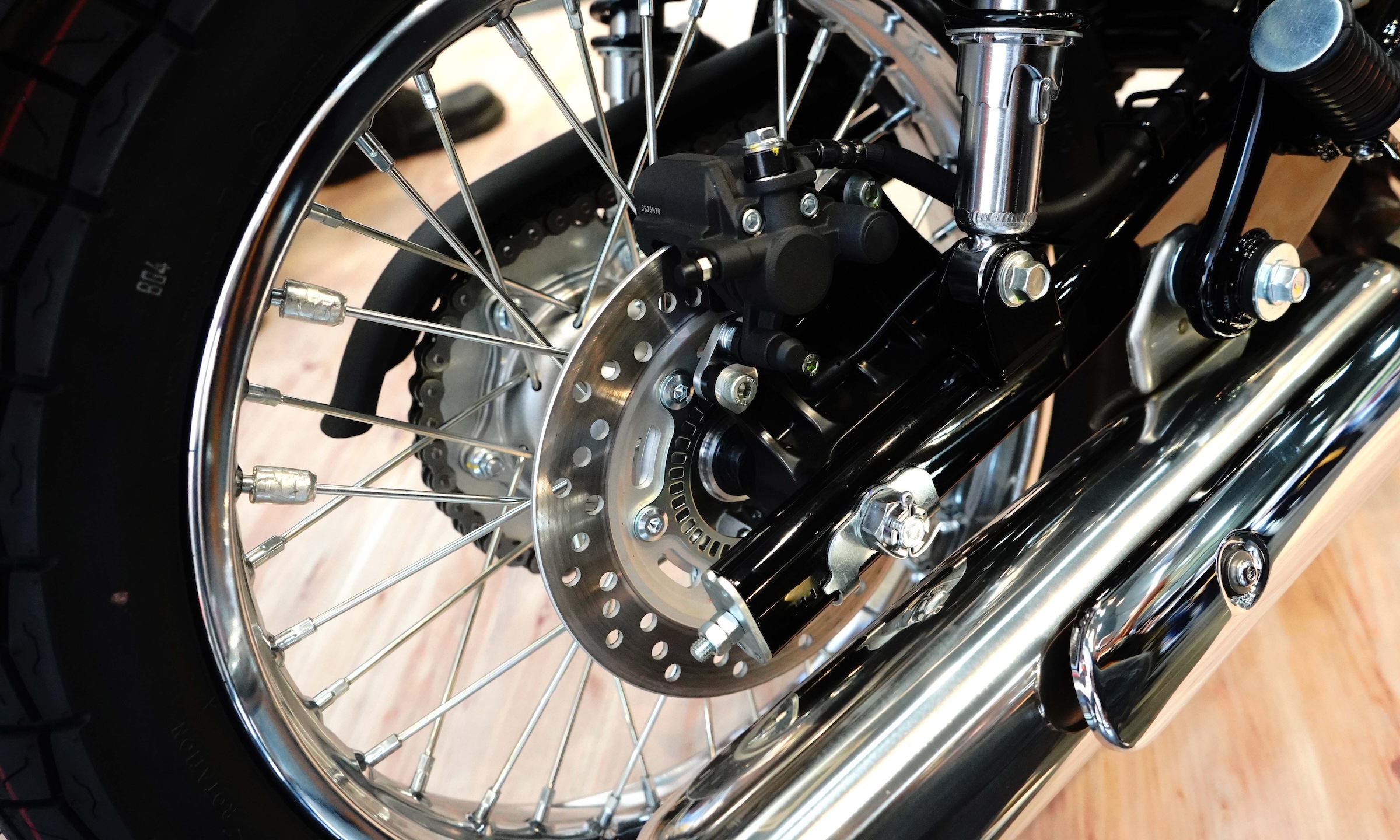 The rear wheel uses a 17-inch rim, also equipped with a single disc brake and anti-lock braking system technology, similar to the front wheel.