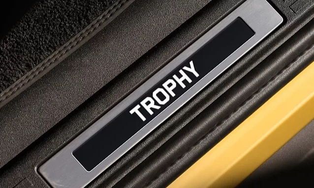 Illuminated Trophy lettering on the door sills.