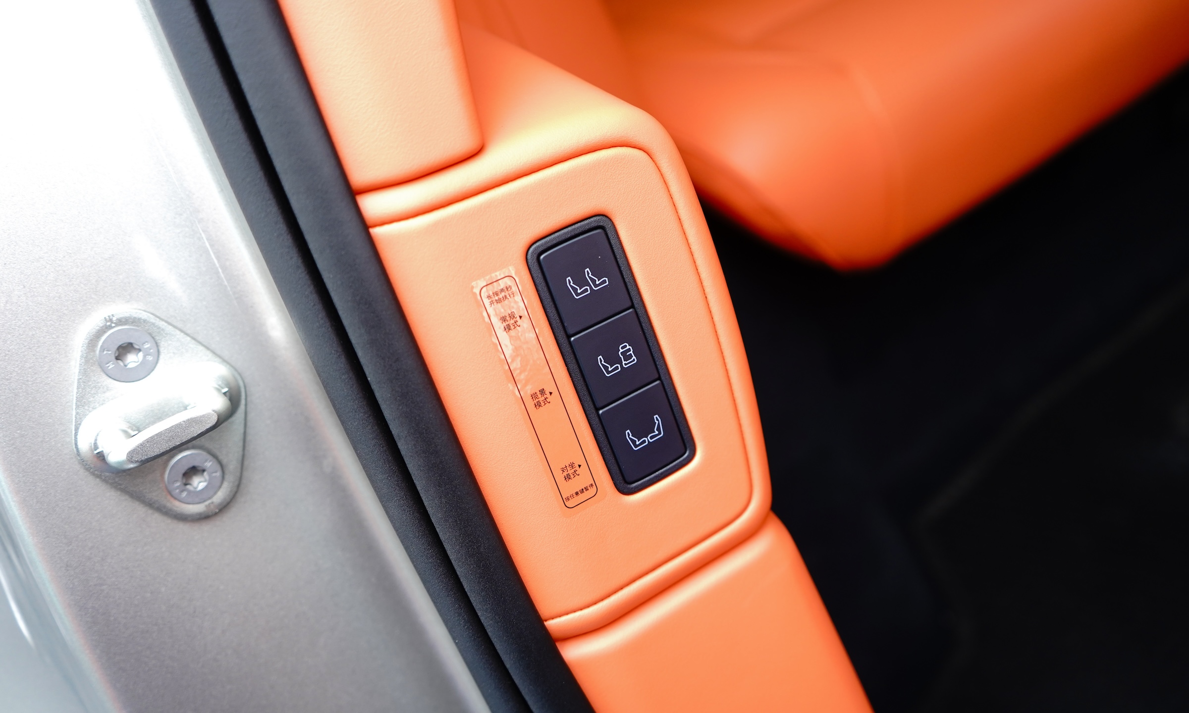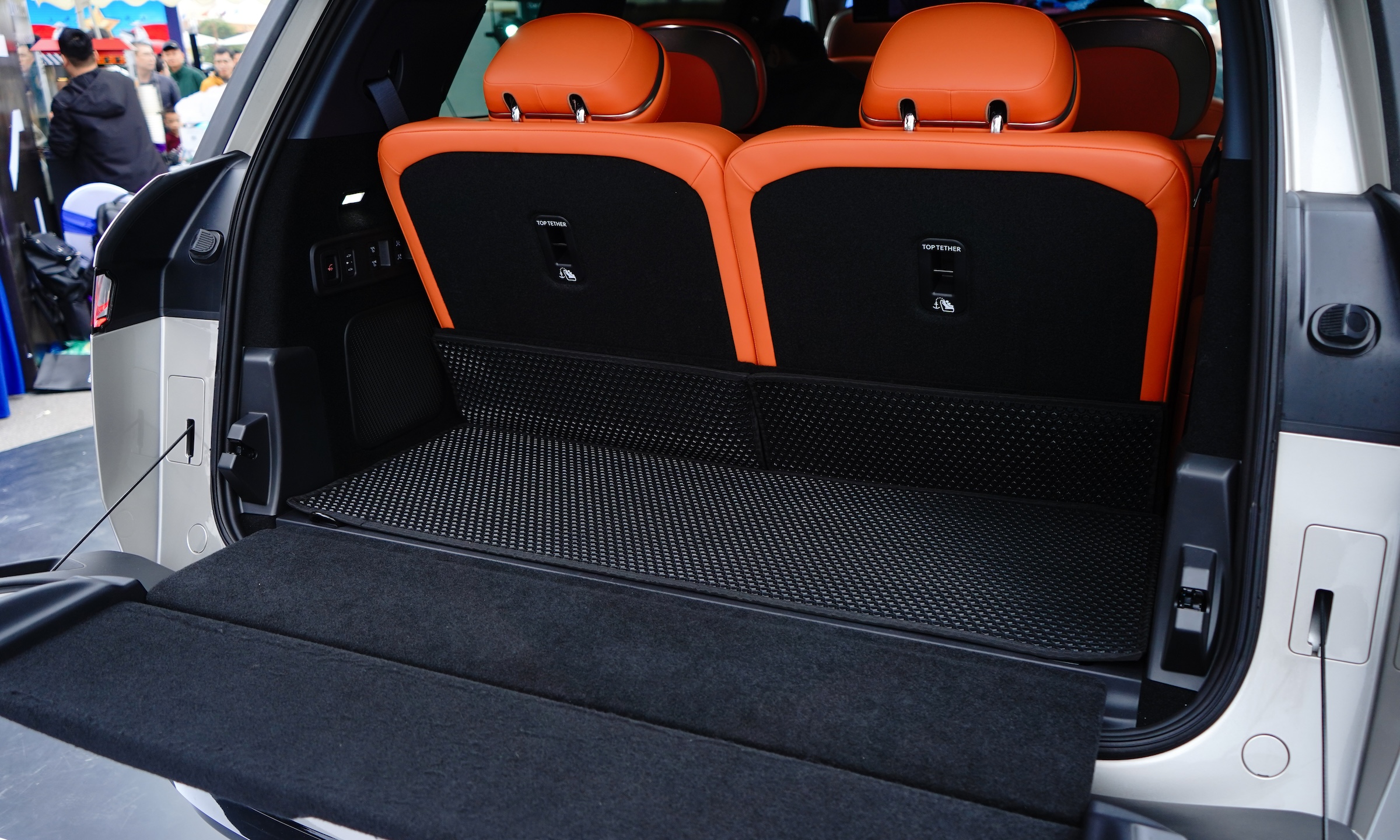 The 900's luggage compartment combines electric and manual adjustments. The vehicle can also lower its ground clearance for easier luggage loading, a feature common in large luxury SUVs.