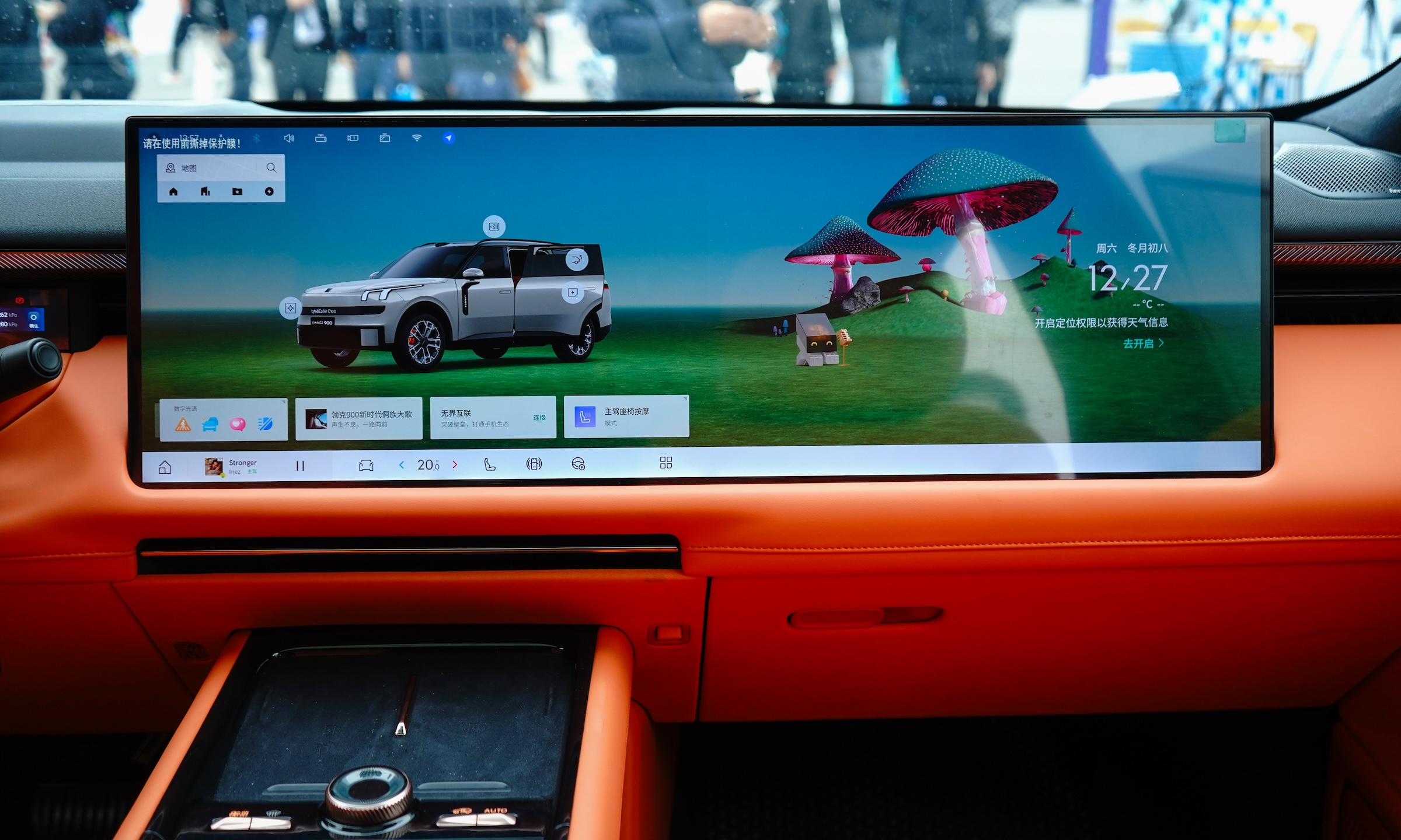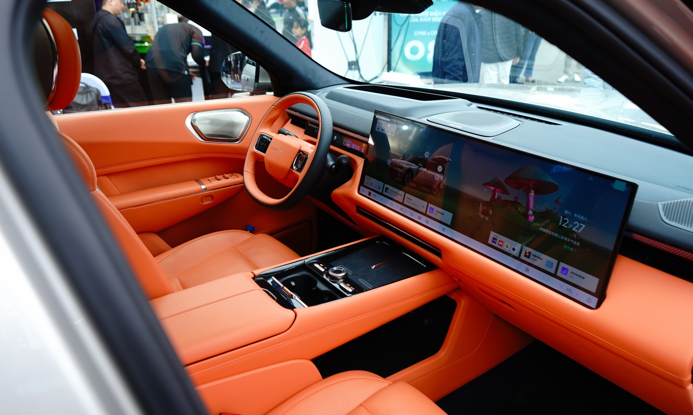 Most vehicle functions are controlled via the large, 30-inch, 6K resolution screen, which extends from the center console to the front passenger seat.