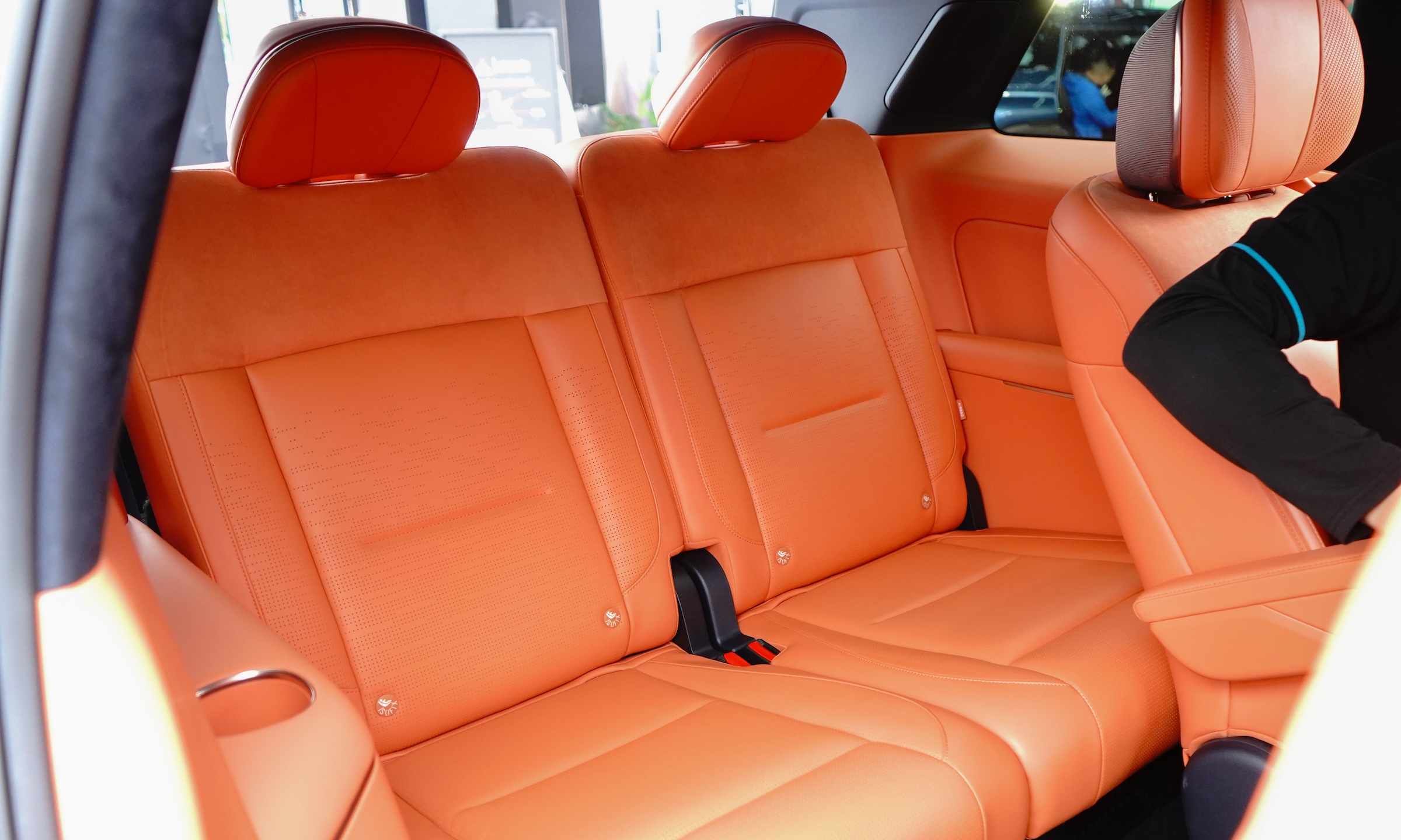 The third row offers ample space for adults. Cup holders and charging ports are thoughtfully arranged throughout the Lynk & Co 900's interior.