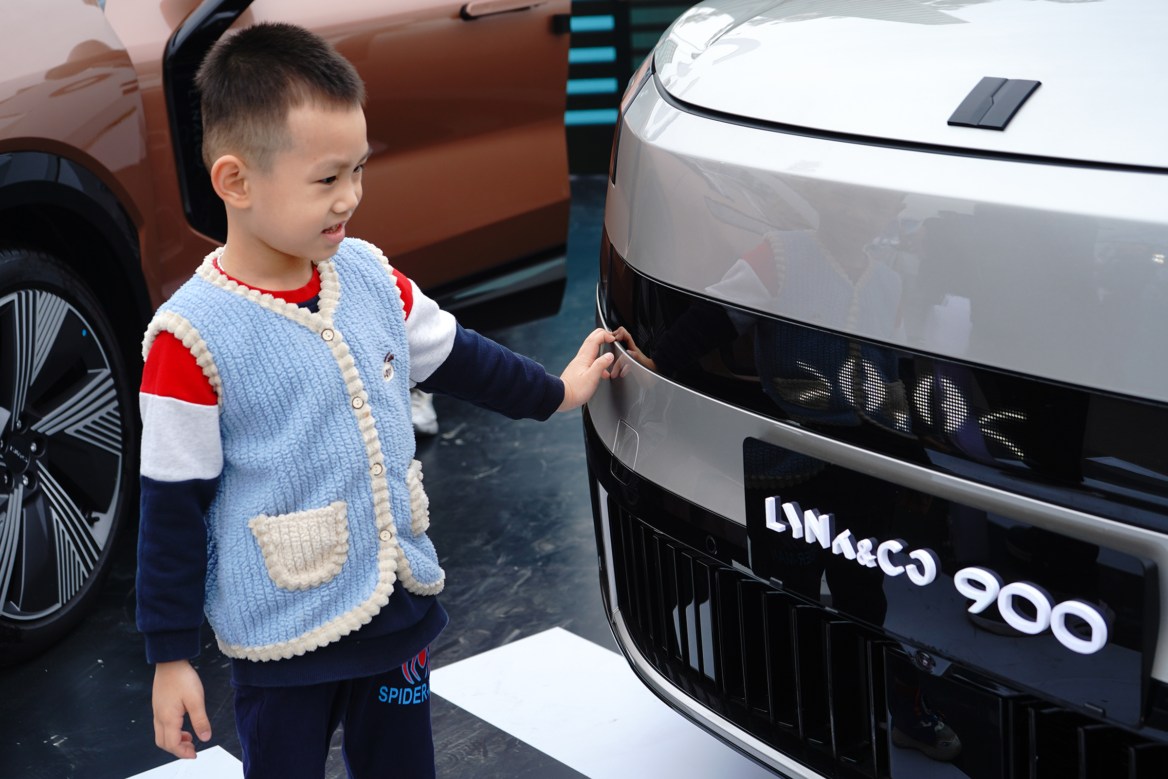 The Lynk & Co display highlights the 900, the brand's newest, largest, and most expensive SUV, slated for release in 2026. This vehicle is larger than the Lexus LX and comparable in size to the Range Rover Autobiography LWB.