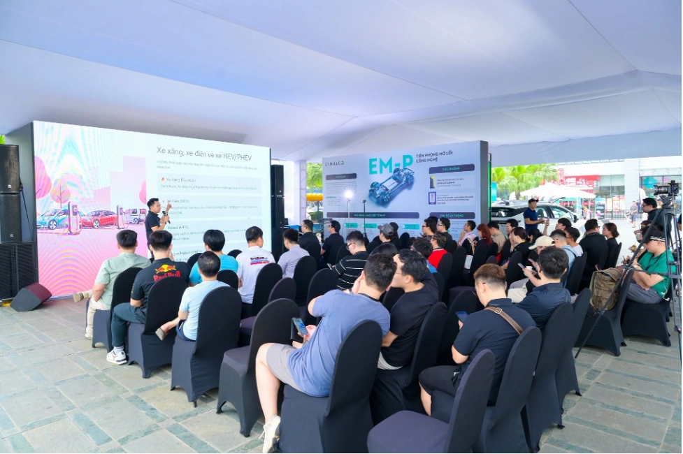 During the Co:talk session, representatives of the organizing committee provided detailed introductions and shared practical experiences regarding the EM-P super hybrid technology platform in the Lynk & Co 08 model for the Vietnam market. This technology is Lynk & Co's most advanced plug-in hybrid electric vehicle (PHEV) system globally, designed to optimize fuel consumption, deliver an engaging driving experience within its segment, and operate independently of charging station infrastructure.