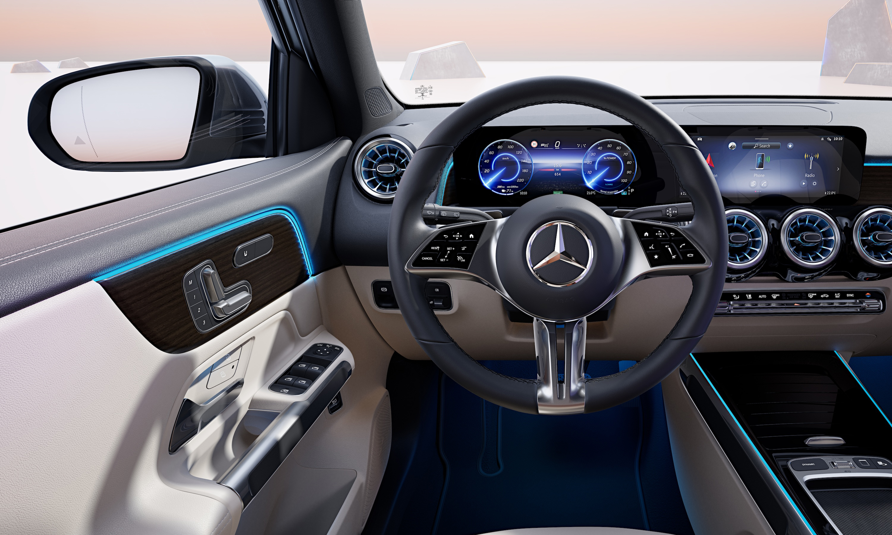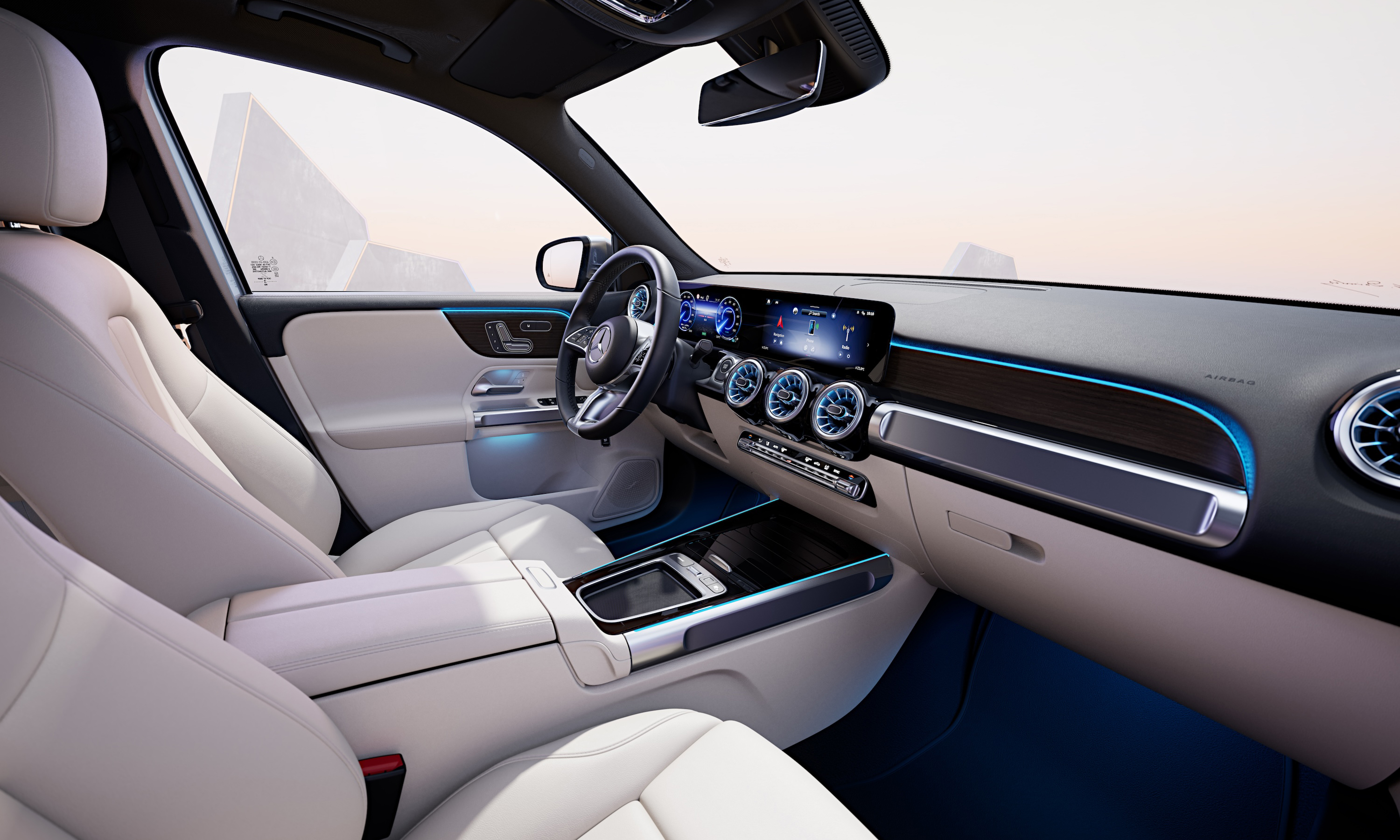 For the interior, the layout remains the same. Only the steering wheel and armrest have been redesigned. Mercedes has added decorative trim to the cockpit with a three-pointed star pattern integrating hidden LED lights. The front and rear rows of seats have additional charging ports for mobile devices.