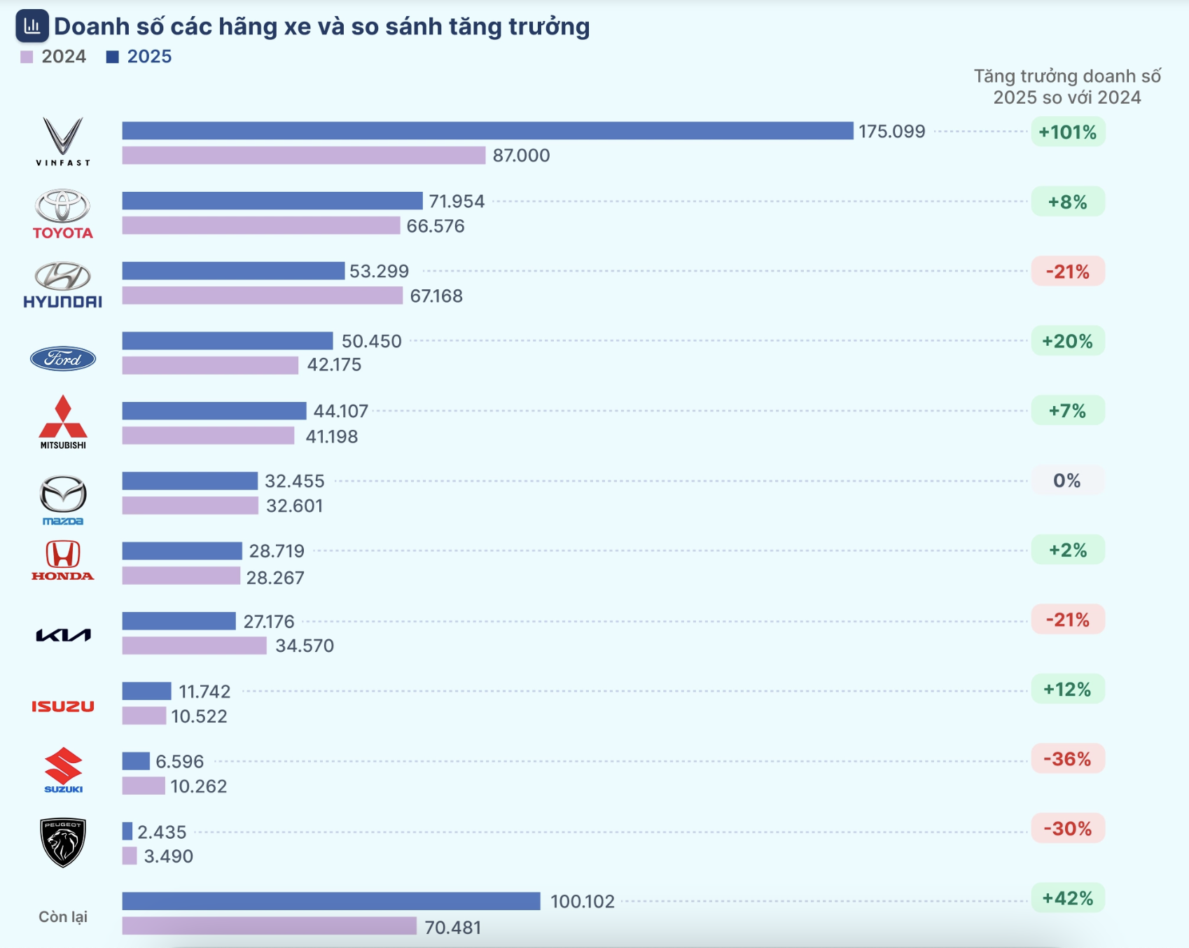 Vehicle sales by brand, 2024-2025. Graphics: Hoang Khanh - Thanh Nhan |