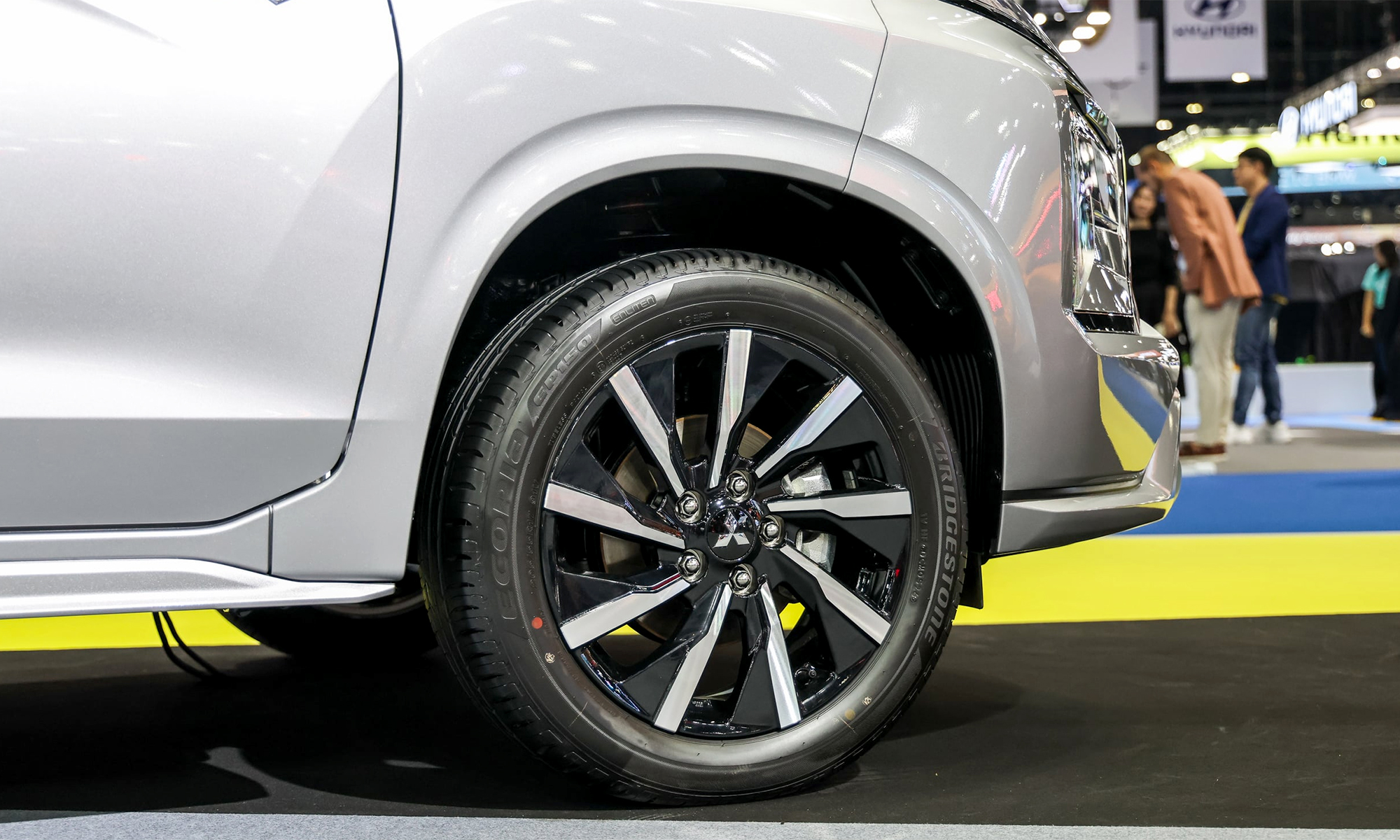 The new Xpander hybrid's chassis maintains the same structure as its predecessor. It features MacPherson front suspension with an anti-roll bar and strut bar, alongside a torsion beam rear suspension. Braking is handled by 4-wheel disc brakes, with ventilated discs at the front. The vehicle rides on 17-inch alloy wheels, fitted with 205/55 R17 tires.