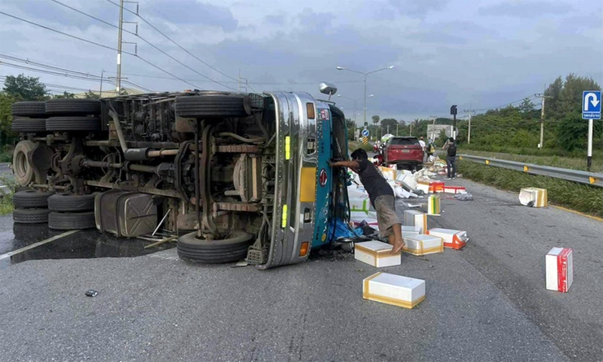 The overturned truck. Photo: Sungnoen Police