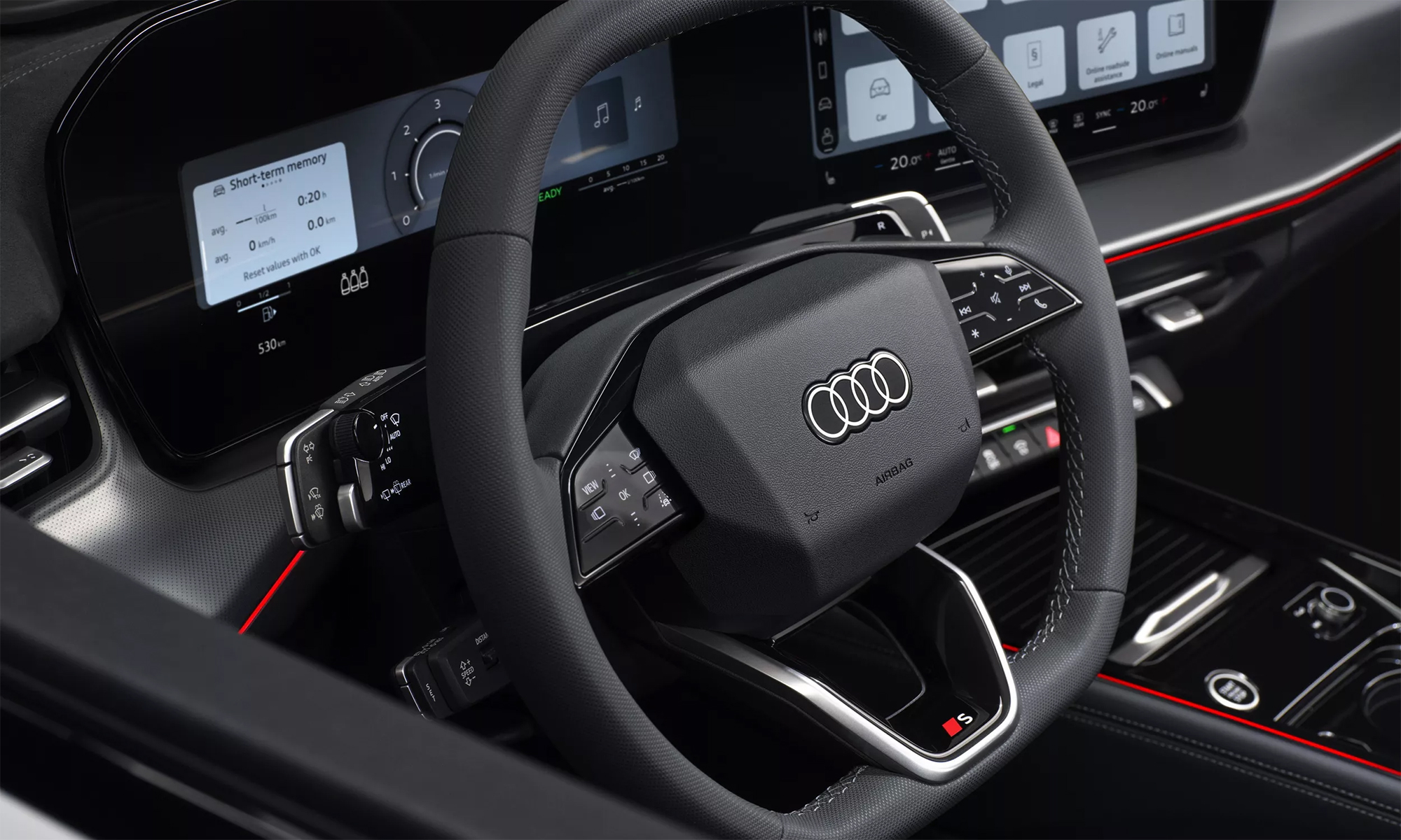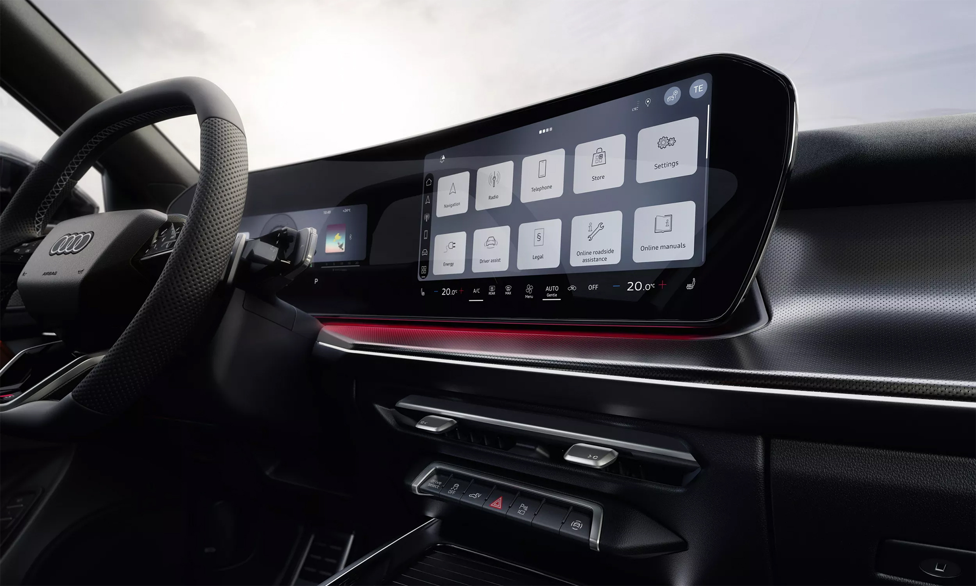 The Q3 Sportback's interior is similar to its sibling, the Q3, featuring a curved dashboard housing an 11.9-inch digital instrument cluster and a 12.8-inch infotainment touchscreen. Due to the redesigned, sloping rear window, the Q3 Sportback's cargo volume is 1,298 liters, 97 liters less than the standard Q3.
