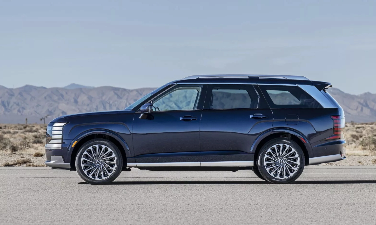 In terms of design, the new Hyundai Palisade adopts a more angular and minimalist aesthetic. The front features five stacked LED lights on each side, framing the grille. The taillights also follow this design philosophy, maintaining a cohesive look.