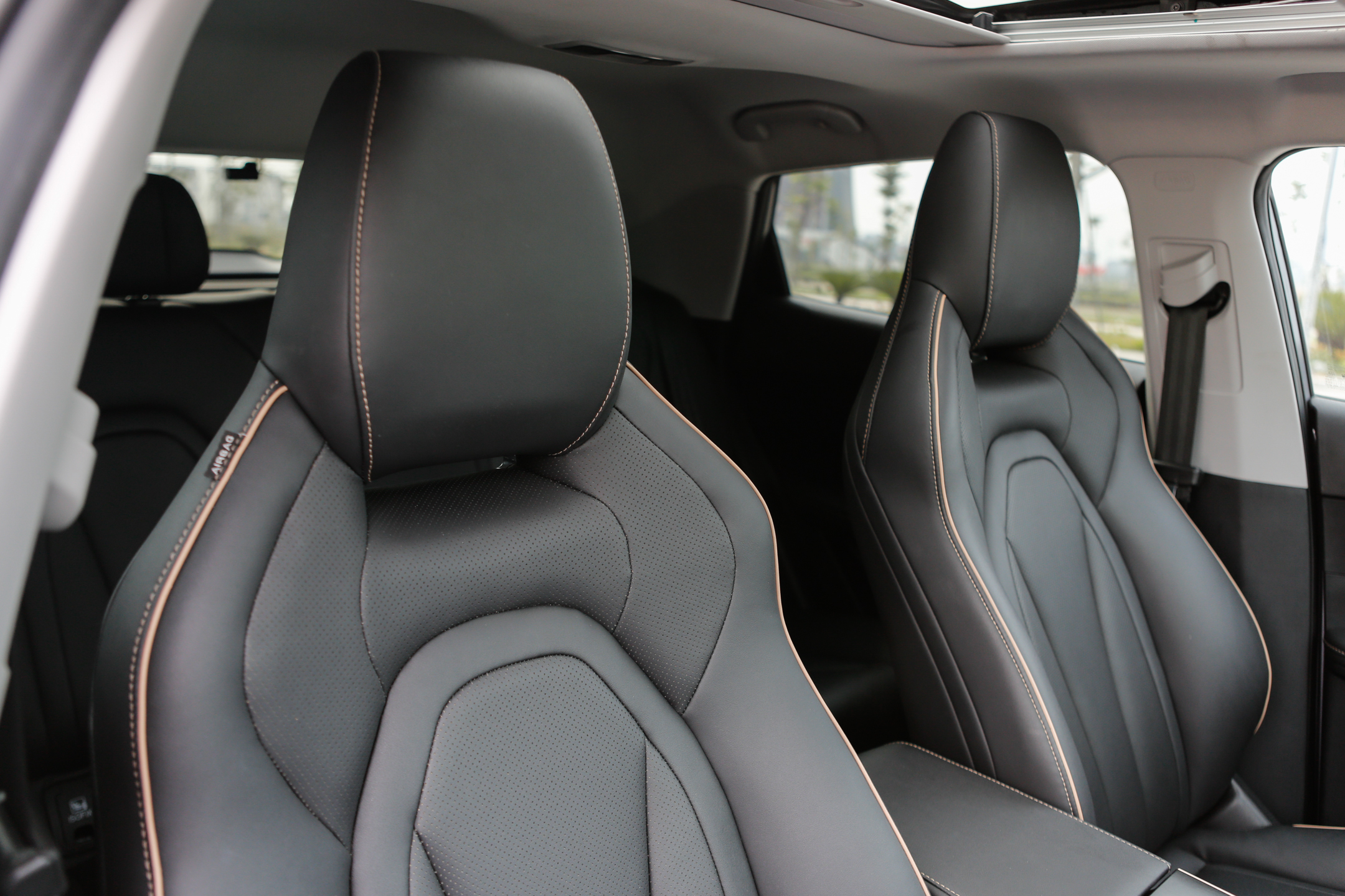 Sporty leather-wrapped seats. Photo: Luong Dung