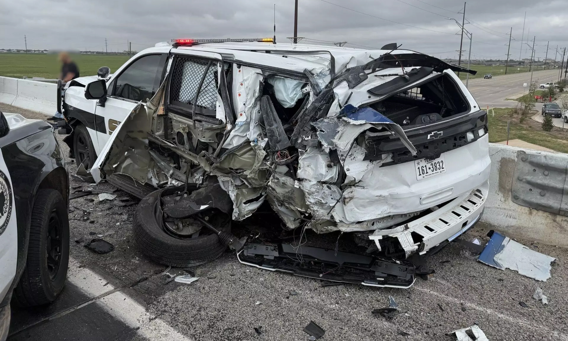 The patrol car's driver's side was torn open by the semi-truck. Photo: Lubbock County Sheriff's Office |