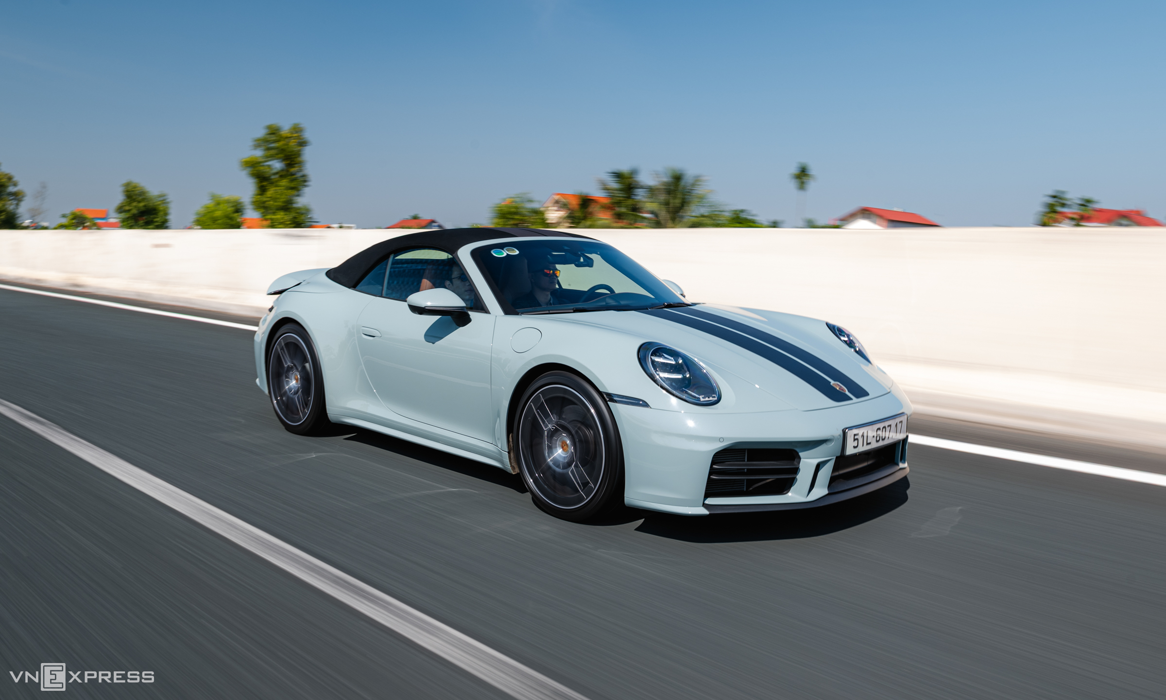 Captured on the Hanoi - Hai Phong expressway, the Porsche 911 Cabriolet showcases its dynamic presence.