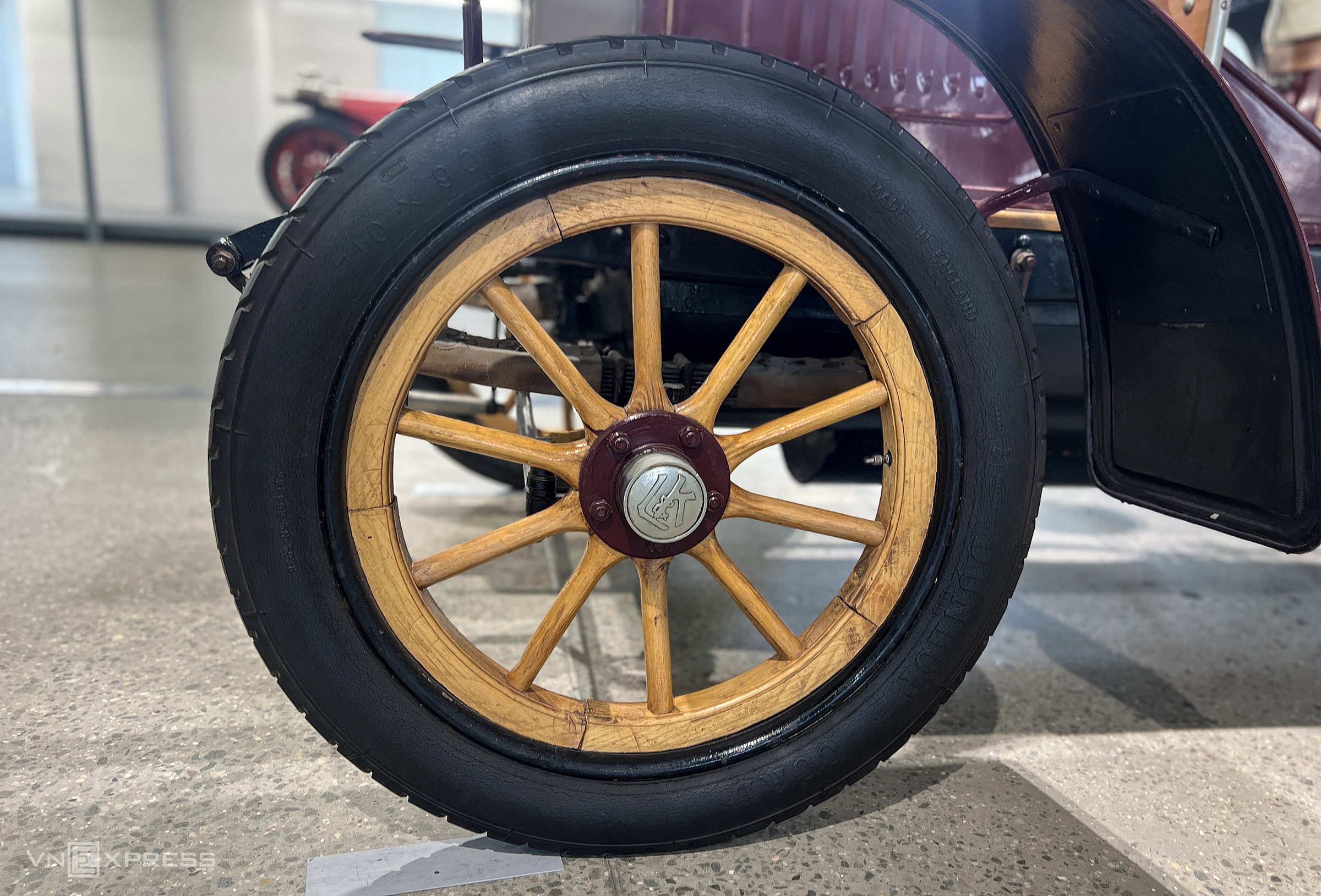 The car's wooden wheels were imported from England, a country with a long tradition in manufacturing wheels for horse carriages and early motor vehicles. Laurin & Klement also offered customers the option of spoke wheels.