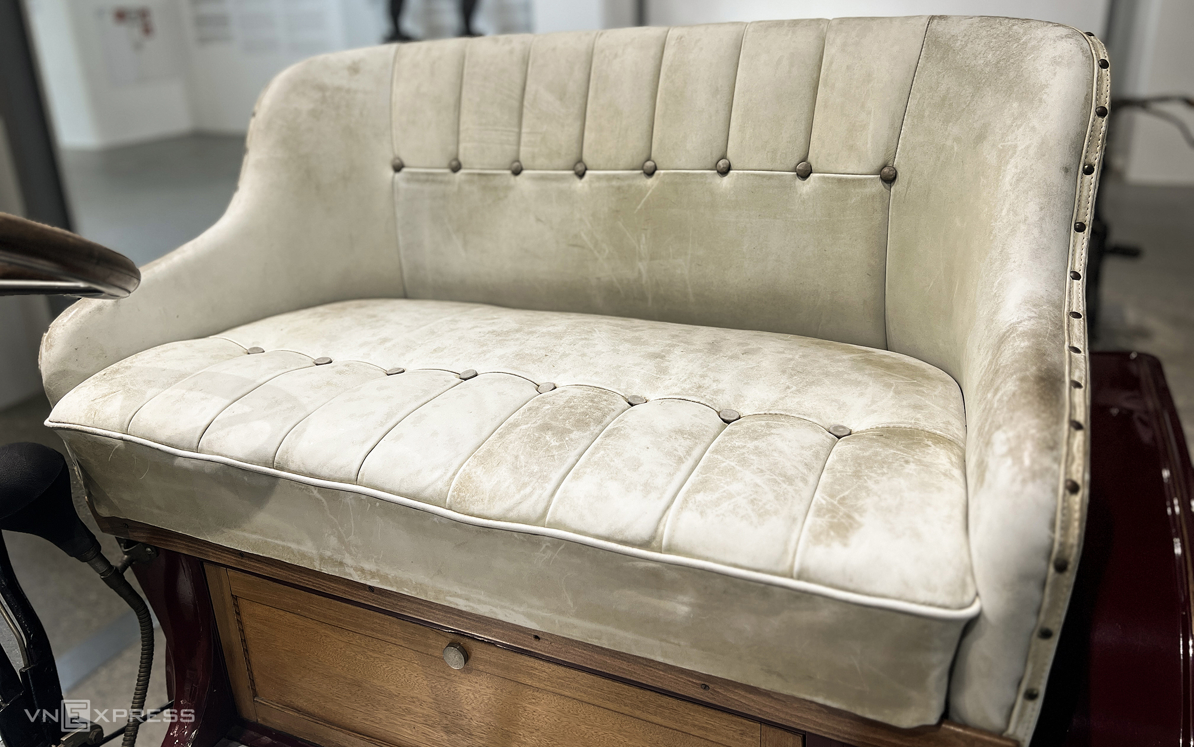 The wide bench seat was upholstered in leather, with an option for two individual seats. A small storage compartment located beneath the seat typically held basic repair tools, rope, a hand pump, or a spare chain.
