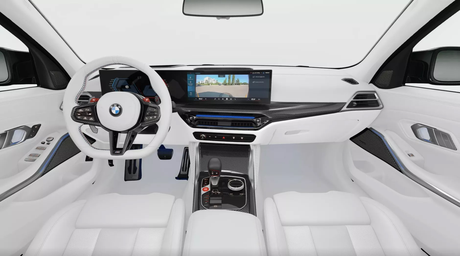 The almost entirely white interior of the 2026 BMW M3 Touring. Photo: BMW |