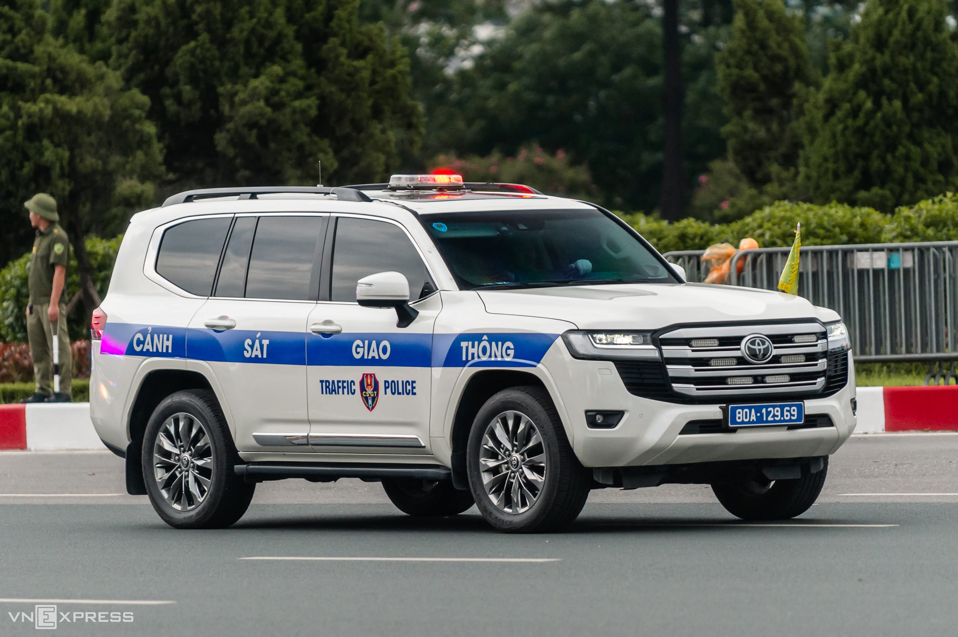 Traffic police vehicle: The Toyota Land Cruiser LC300, a full-size SUV, is used by the Vietnamese Traffic Police. The vehicle is equipped with a twin-turbo 3.5-liter V6 engine, a 10-speed automatic transmission, and a full-time 4-wheel drive system, enabling operation on various terrains.