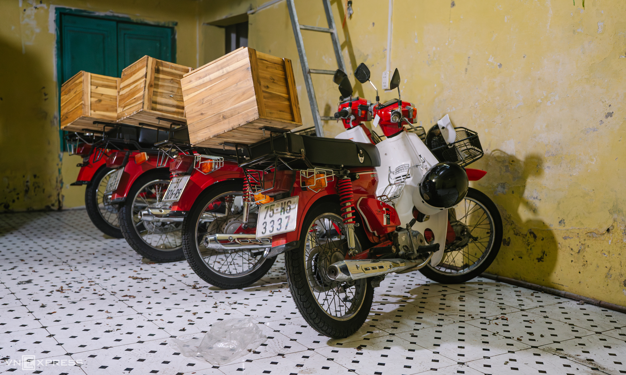 Quan says they have over 10 Honda C70 Econo-Powers for tours, usually kept at a workshop on Bach Dang Street. Most were found in disrepair but had complete documentation. |