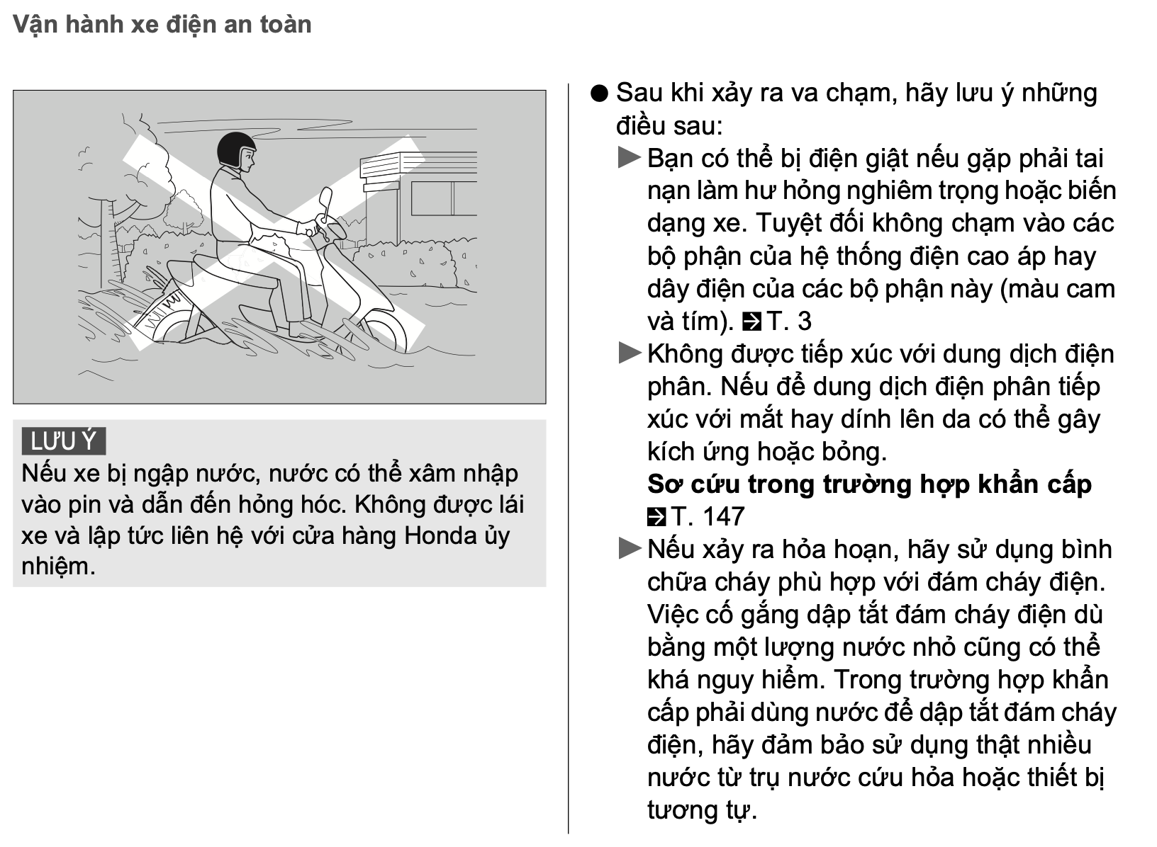 A warning against submerging the vehicle in water on the Honda CUV e: electric motorcycle model, despite its IP67-rated battery pack. Screenshot |