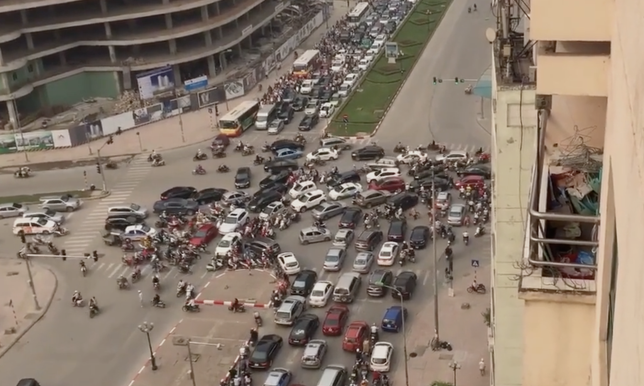 Traffic jam at an intersection in Hanoi. *Still from video* |