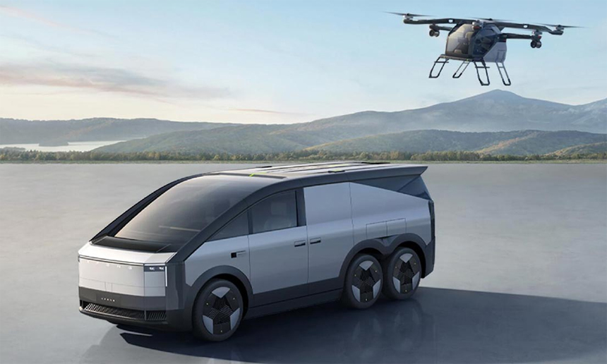 The eVTOL model in the video is part of Xpeng's Land Aircraft Carrier (LAC) flying car module, introduced in 2024. The LAC is a three-axle vehicle with an attached helicopter. The vehicle measures 5,500 mm long, 2,000 mm wide, and 2,000 mm high.