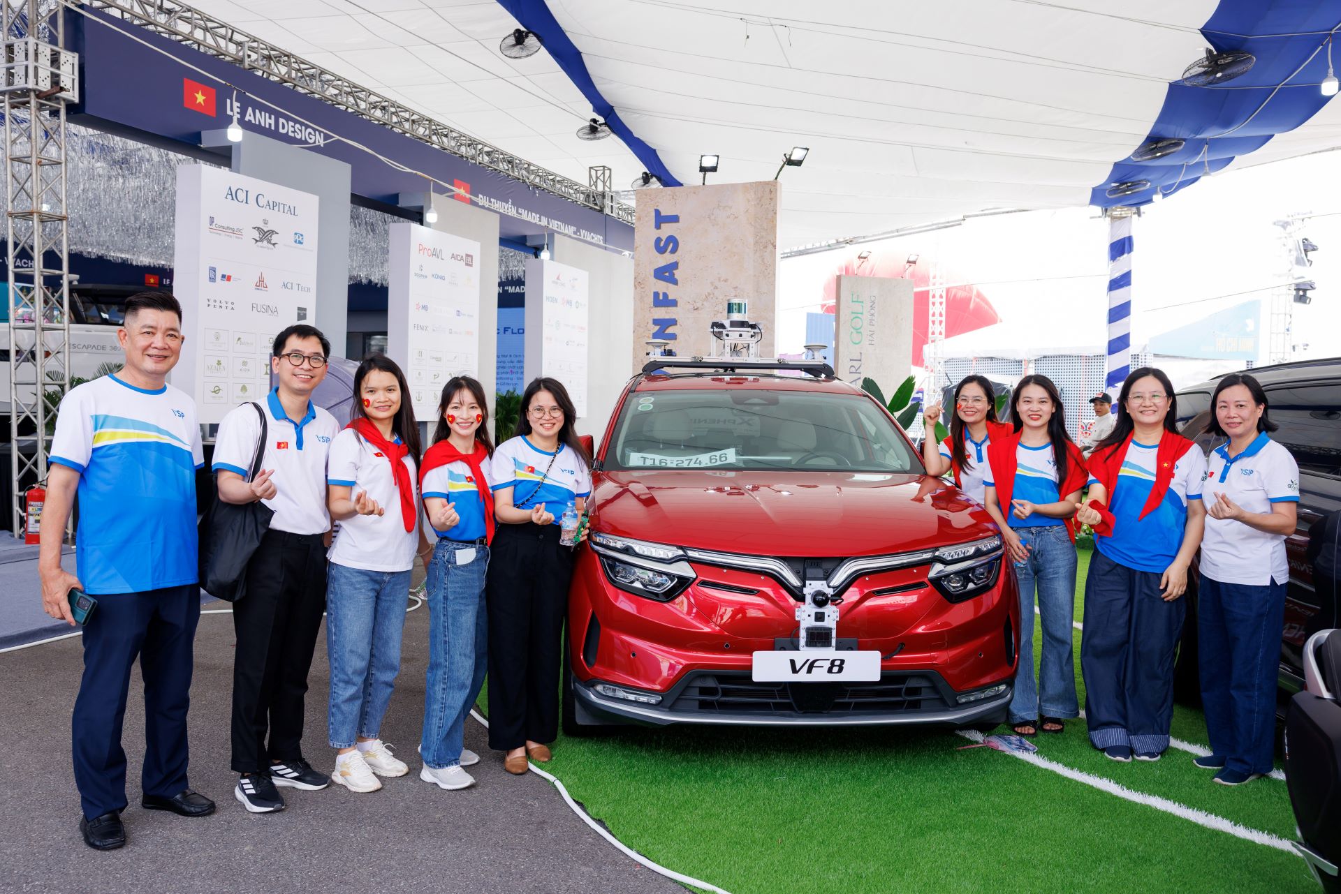 A VinFast VF 8 testing level 4 autonomous driving technology at the exhibition. Photo: Tuan Vu