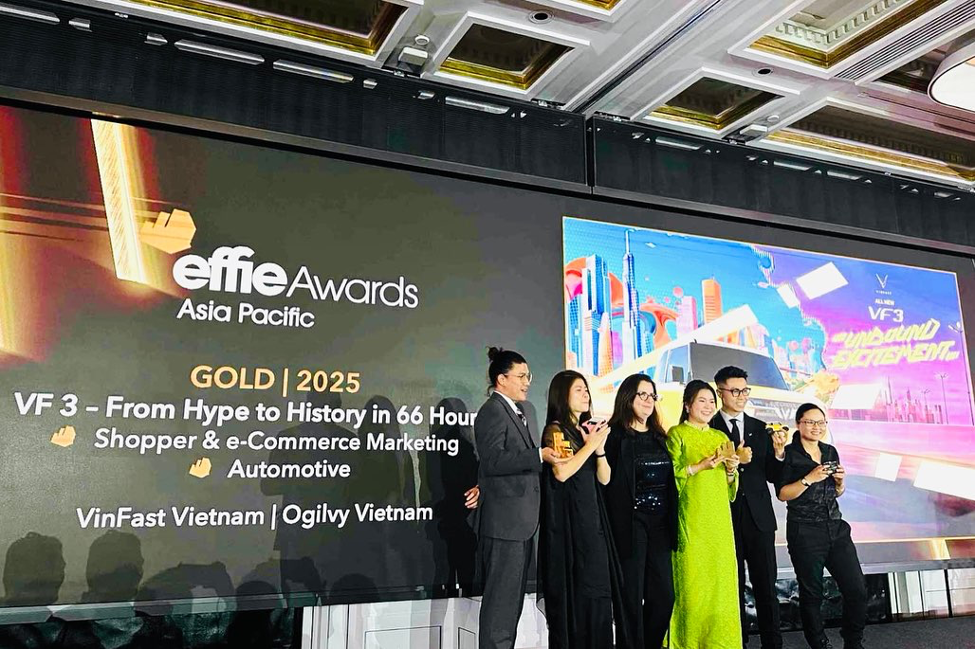 The Vietnamese electric vehicle manufacturer received six awards, including recognition in the two highest categories of the 2025 APAC Effie Awards: second place for Brand of the Year and third place for Marketer of the Year. The "VF 3 – From Hype to History in 66 Hours" campaign earned Vinfast two Gold awards in the Automotive and Shopper and eCommerce Marketing categories due to the campaign's positive impact on business performance.