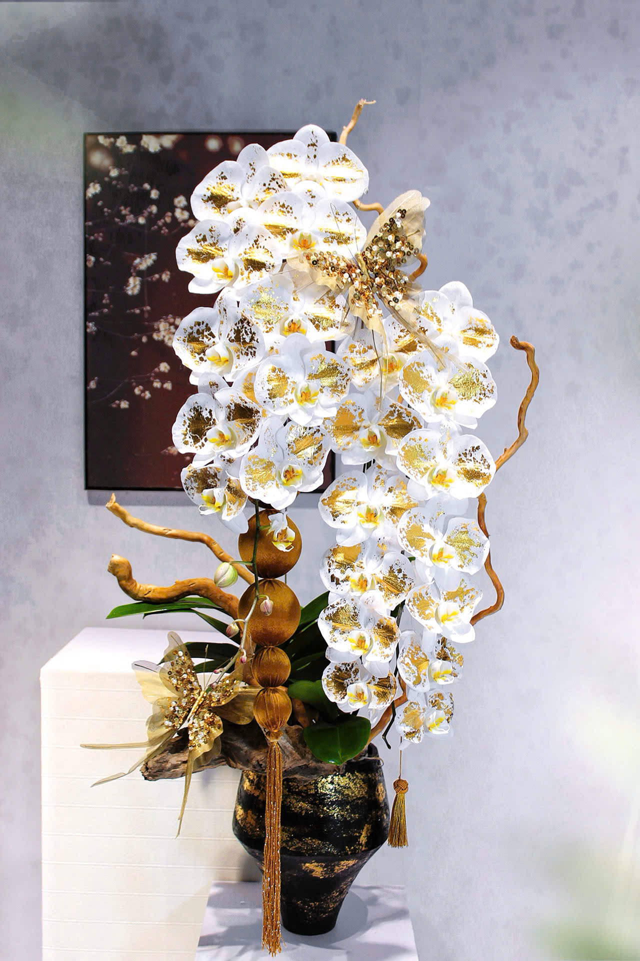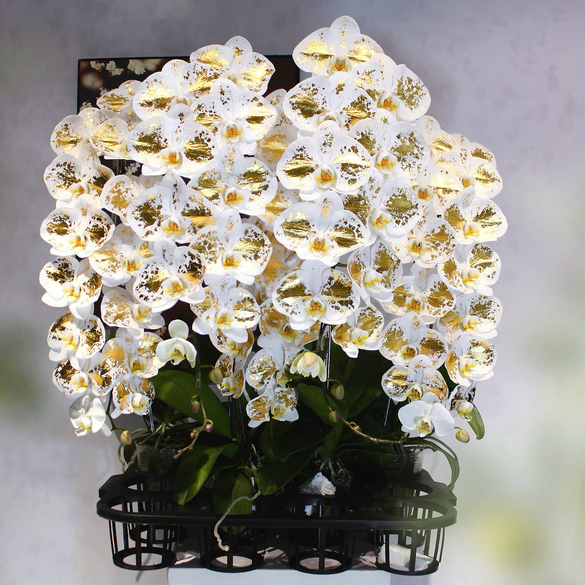 A pot of two gold-plated princess orchid stems is priced at 4,5 million dong. Photo: Vo Van Con