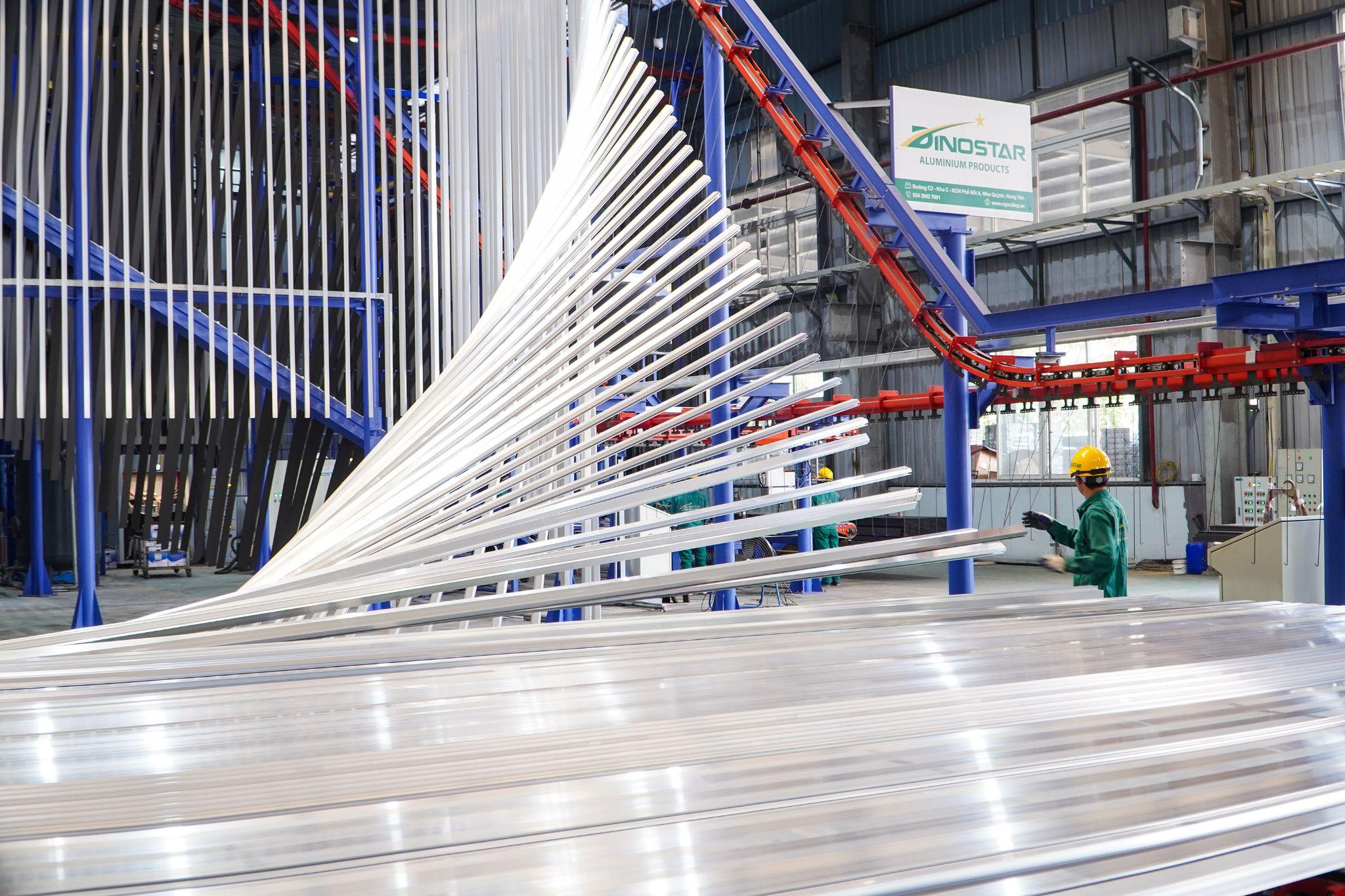 The automated and closed-loop vertical powder coating line at the Dinostar Aluminum factory. Photo: Ngoc Diep Group