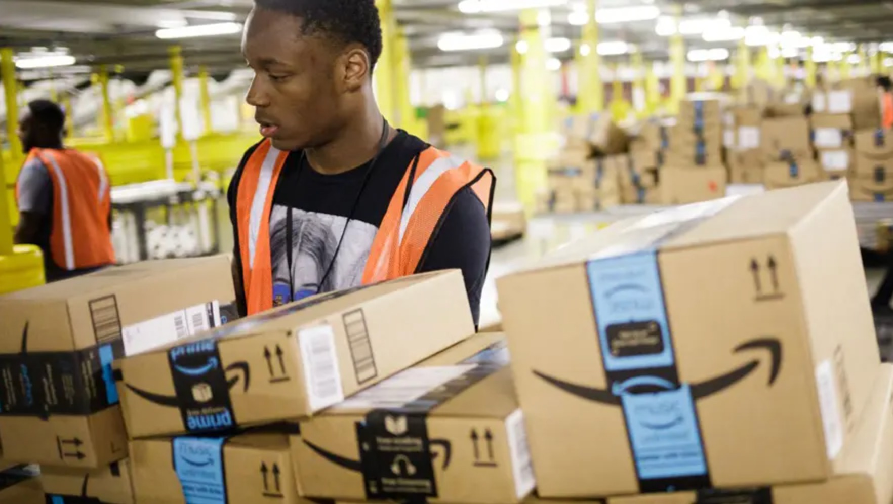 An employee processing orders in an Amazon warehouse. Photo: Amazon |