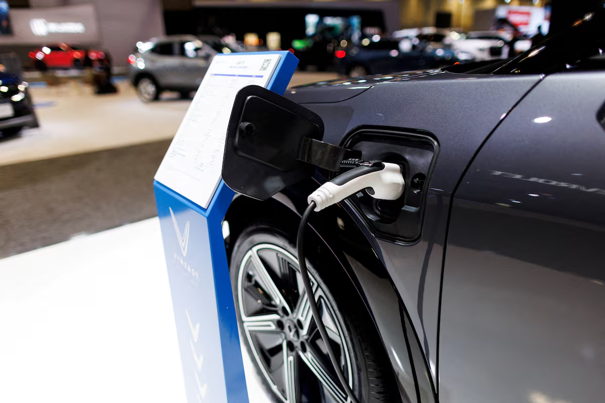 A VinFast electric vehicle charging at the Canadian International AutoShow in Toronto, Ontario, Canada, on 15/2/2024. Photo: Reuters |