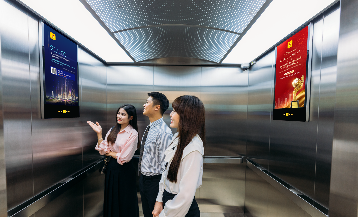 Advertising screen in an elevator. Photo: Chicilon Media |