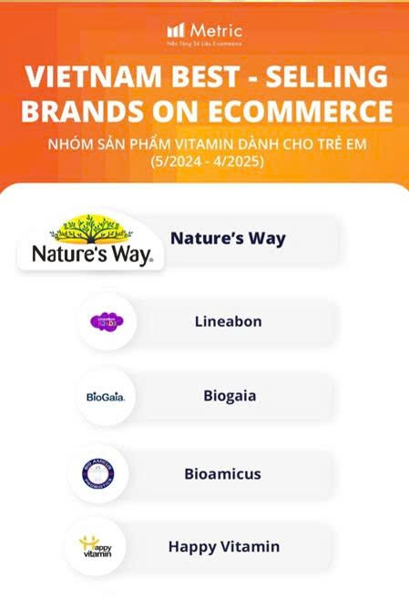 Brands with a long-term vision and adaptability to digital platforms are gaining a competitive edge. Nature's Way, an Australian children's vitamin brand, has emerged as the market leader in authorized retailer sales over the past year (1/5/2024 - 30/4/2025), capturing a 15% market share, according to Metric.